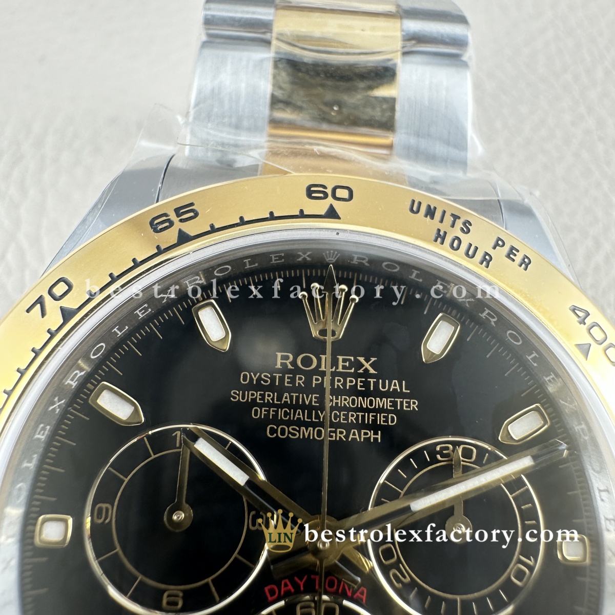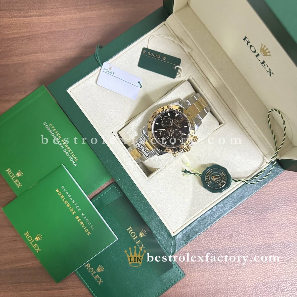 - Clean Factory lo garantisce con una vera garanzia di due anni, perché conosce la qualità della sua costruzione. Per chi vuole un Daytona bicolore senza eccessi, questa versione con quadrante nero è la risposta: sportiva, elegante e incredibilmente versatile.