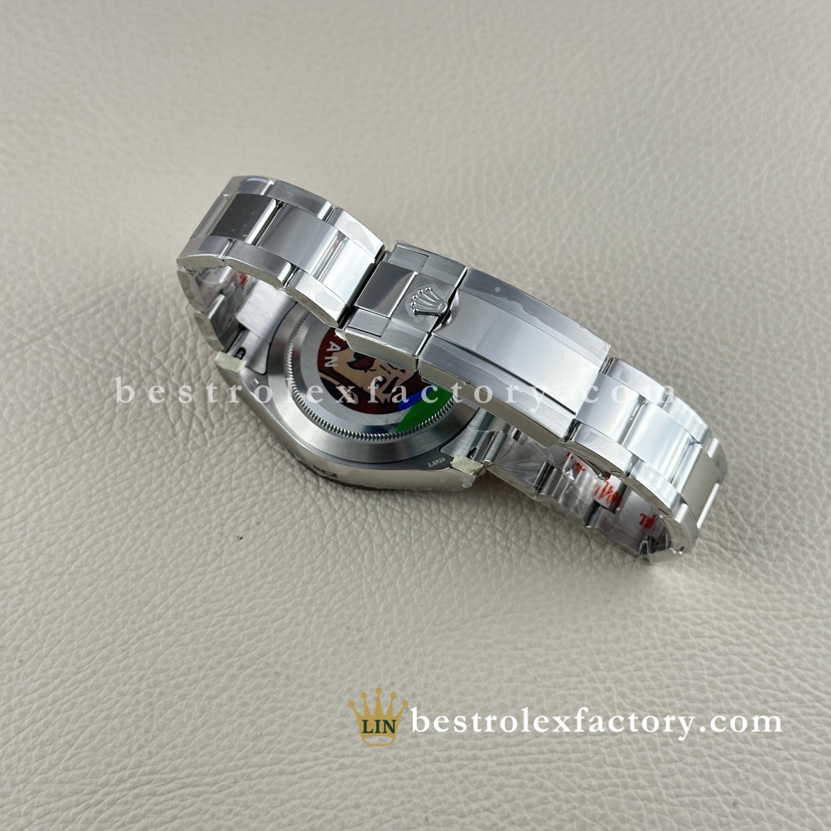 - Tutto parte da quel quadrante Ice Blue ipnotico che Clean Factory è famosa per aver perfezionato: quel blu glaciale che cambia da argento a un azzurro pallido a seconda della luce, riservato esclusivamente ai Rolex in platino. Ma invece dei classici indici applicati, qui trovi otto baguette di moissanite di grado superiore che, a dirla tutta, risaltano ancora di più. Sullo sfondo Ice Blue brillano con un fuoco bianco puro.
