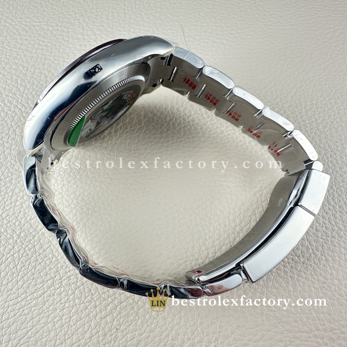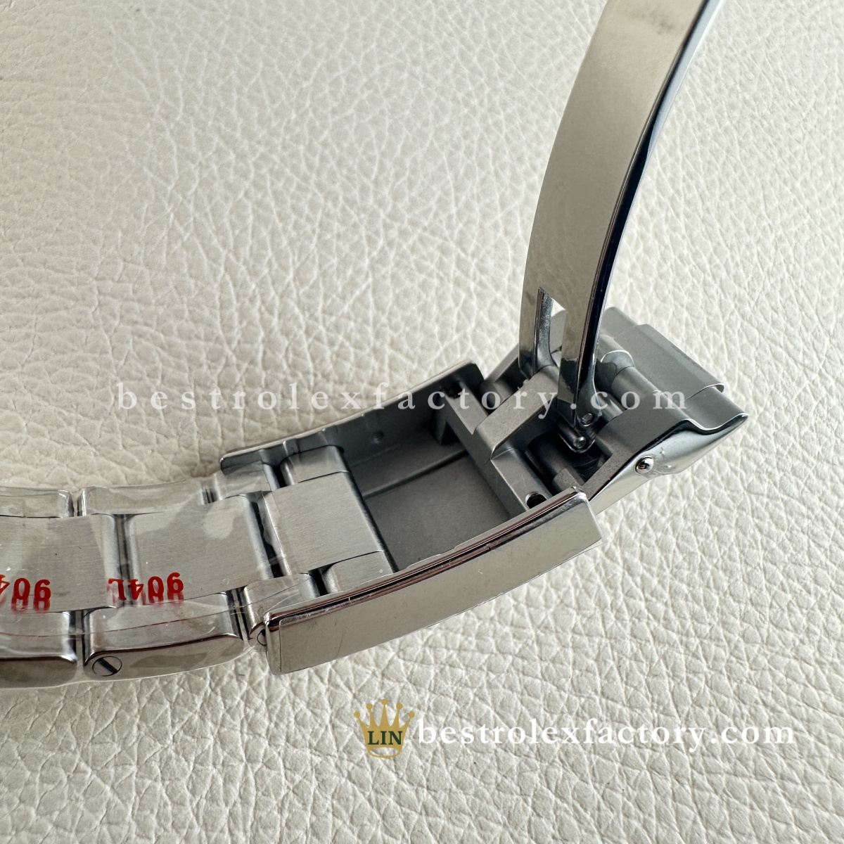 - Iniziamo dal quadrante ice blue, perché è ciò che rende speciale questa referenza. Nell’universo Rolex, l’ice blue è riservato esclusivamente ai modelli in platino. Non in oro bianco, non in acciaio—solo platino. È un azzurro glaciale che si trasforma tra argento e blu pallido a seconda della luce. Clean Factory ha impiegato mesi per perfezionare questa tonalità: troppo blu e sembra finto, troppo argento e diventa anonimo. Il risultato è ampiamente riconosciuto come il quadrante ice blue più accurato nel mondo delle repliche.