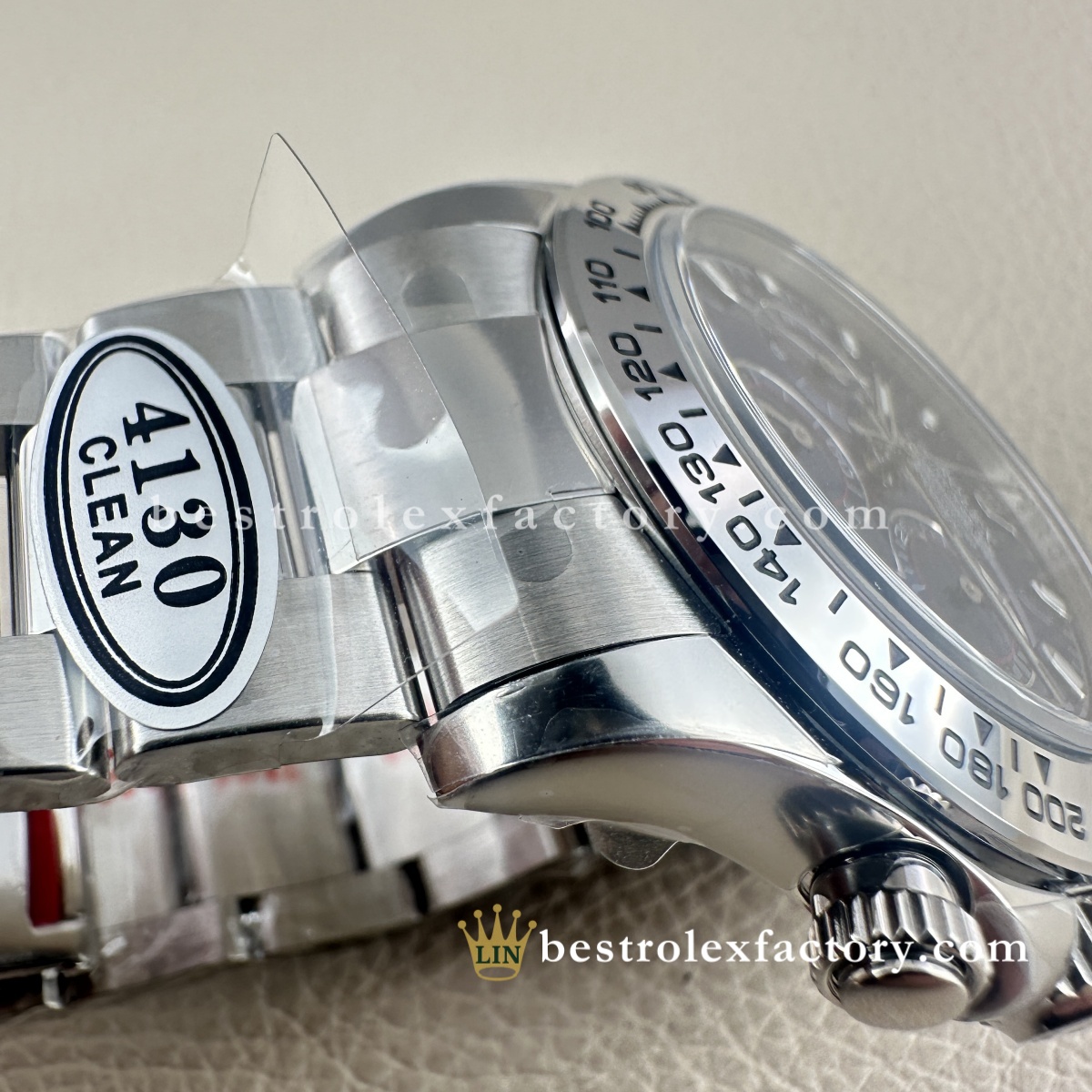 - Le tolleranze della cassa sono fondamentali, perché il movimento super clone 4130 richiede dimensioni precise. Se la cassa è troppo spessa—come nei modelli con peso al tungsteno—il movimento non si inserisce correttamente, compromettendo l’impermeabilità e l’allineamento delle lancette. Clean Factory lavora ogni cassa secondo specifiche esatte di 40mm × 12,4mm, garantendo montaggio perfetto. Ecco perché la lancetta cronografica scorre fluida senza esitazioni, e perché ottieni una reale impermeabilità a 100 metri.