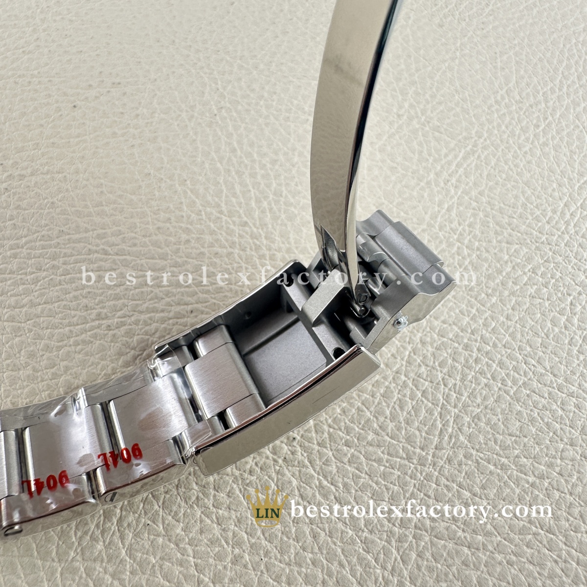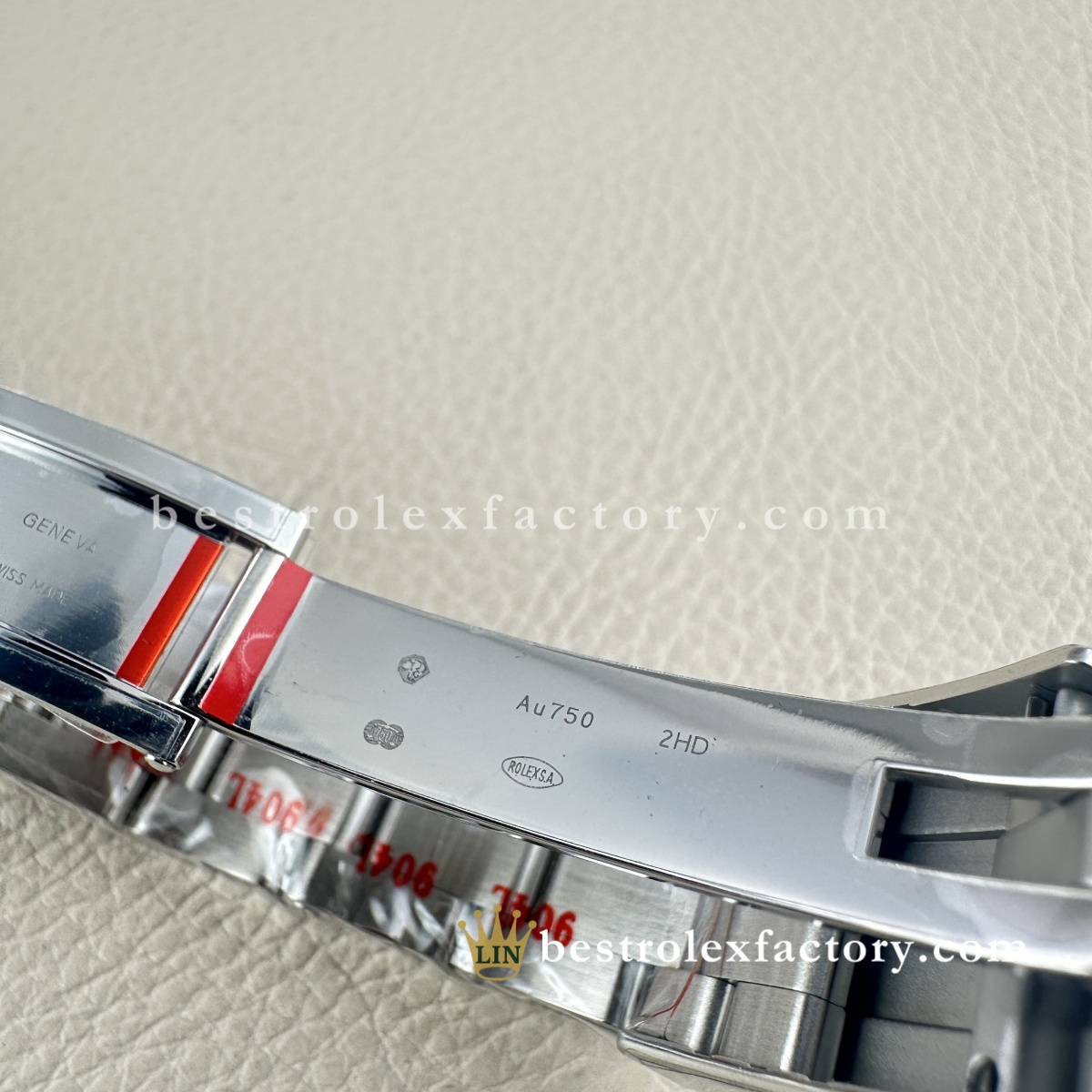 - Il bracciale e la chiusura rispettano lo stesso livello di attenzione. Molti modelli appaiono vuoti o rumorosi; qui le maglie sono solide e si muovono fluide. La chiusura Oysterlock si aggancia con uno scatto deciso, e l’estensione Easylink funziona senza giochi. Quando lo indossi, il bracciale si adagia al polso in modo naturale, sostanzioso ma non ingombrante.