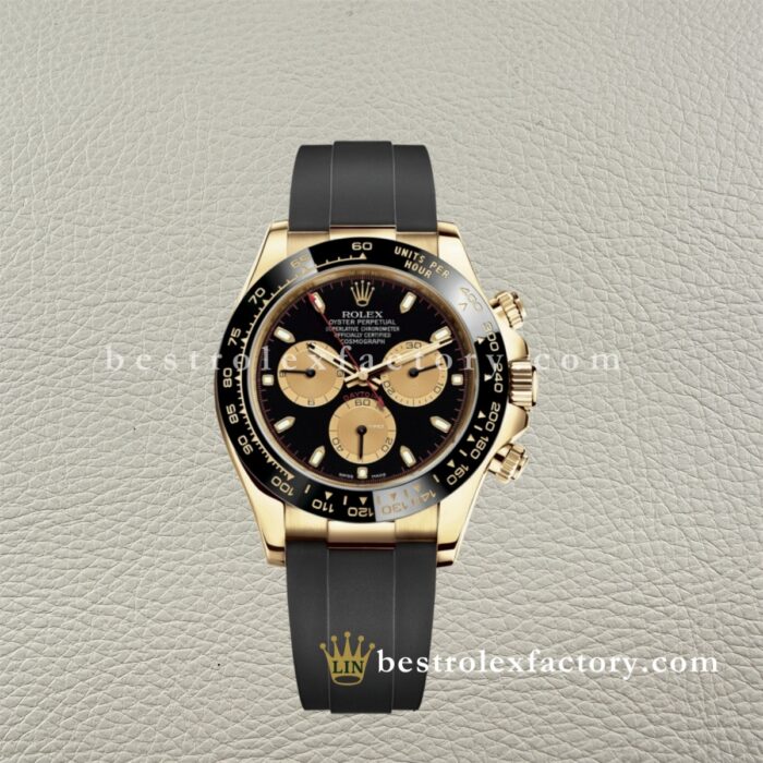 - Clean Factory Rolex Daytona 116518LN-0047 Yellow Gold Black Champagne Dial Oysterflex Super Clone