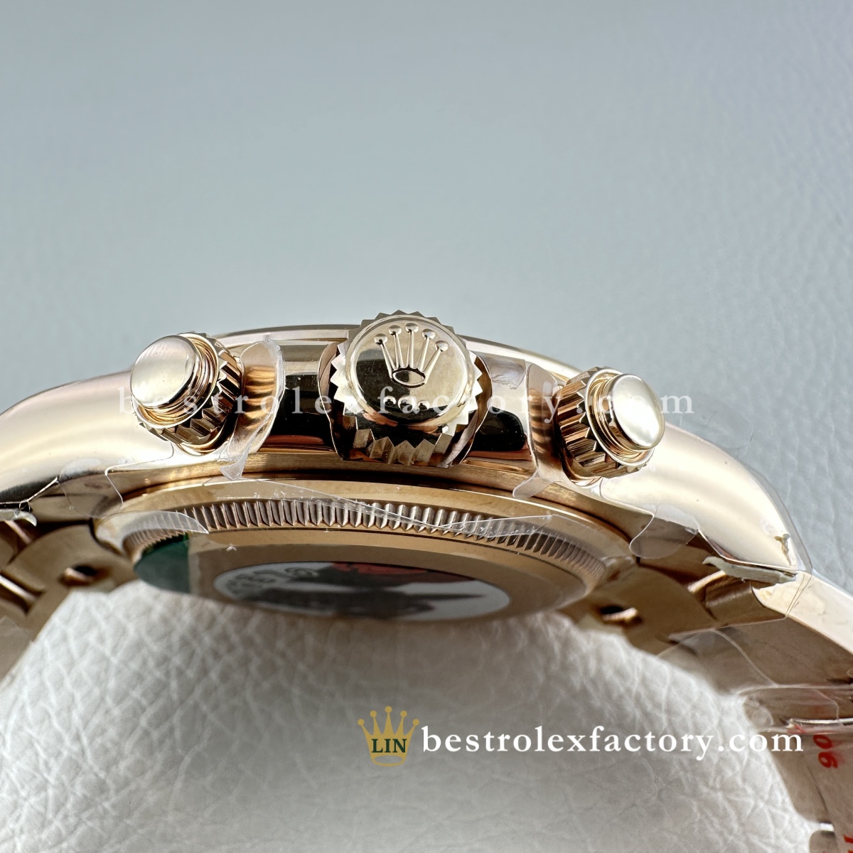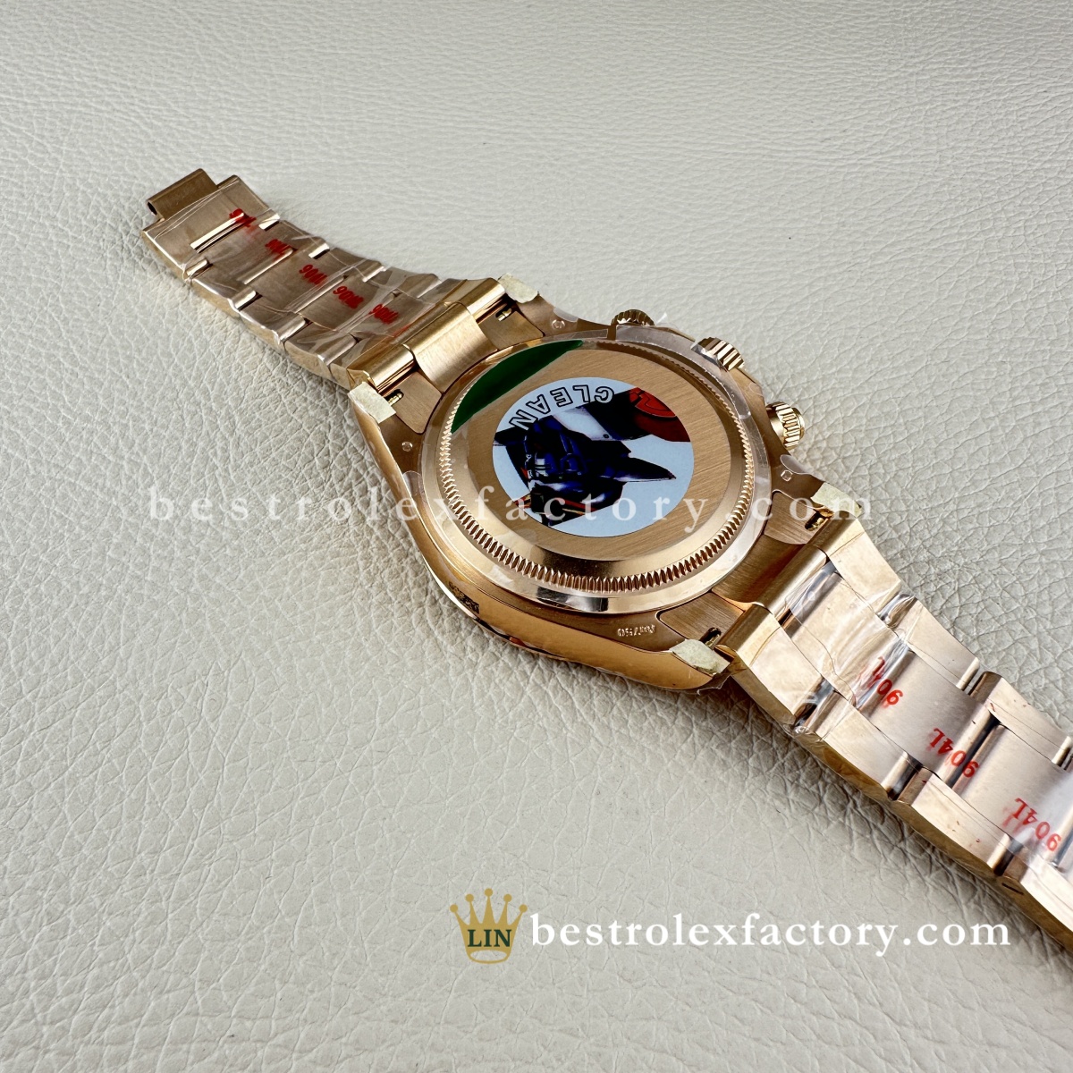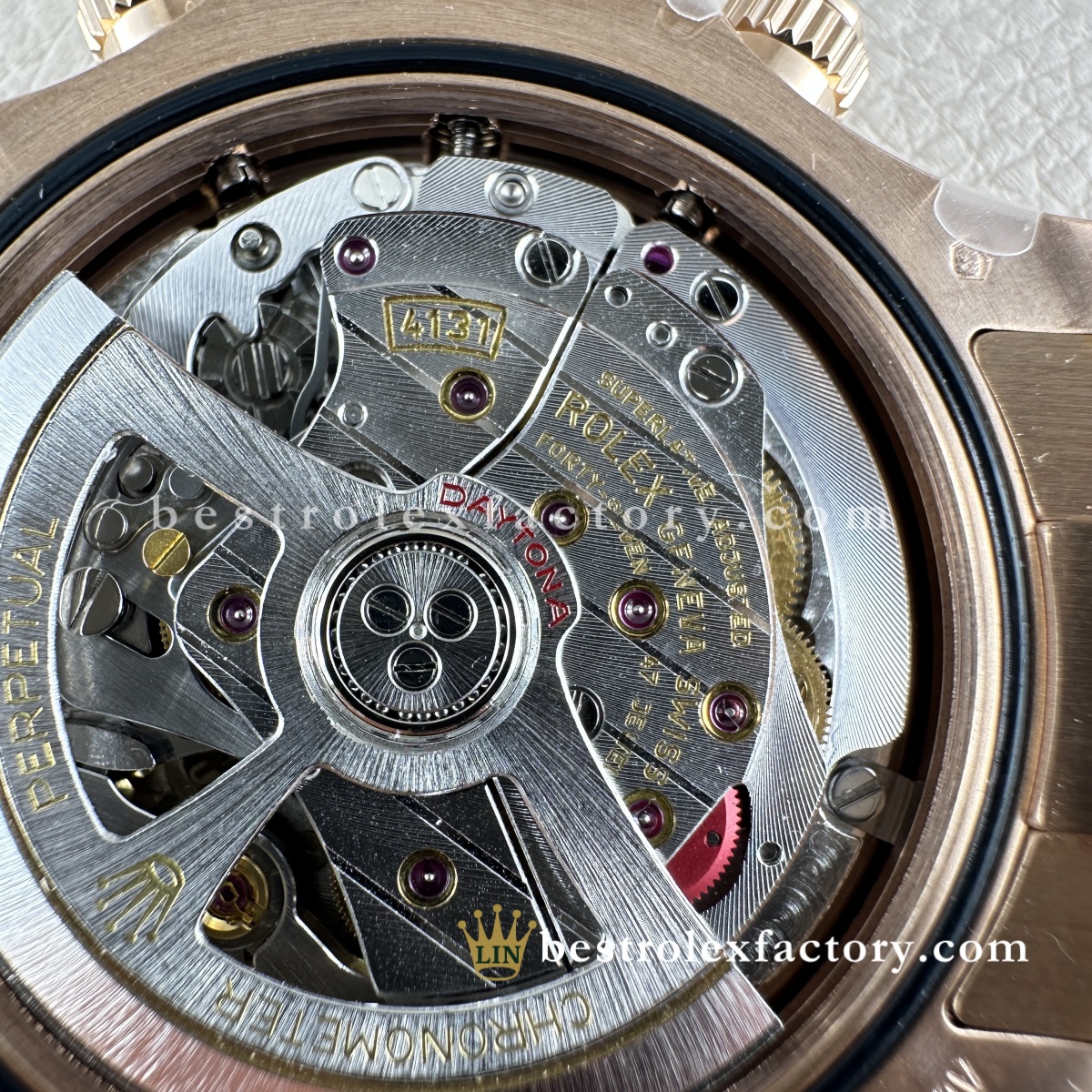 - Il Rolex Super Clone Daytona 126505-0002 di Clean Factory è dove il design tradizionale incontra un’esecuzione straordinaria. Cassa interamente in oro Everose, profondo quadrante nero, subquadranti Sundust che brillano di particelle cristalline e indici delle ore in diamante moissanite—questo è un Daytona che non dovrebbe esistere, ma che assolutamente merita di esserci.