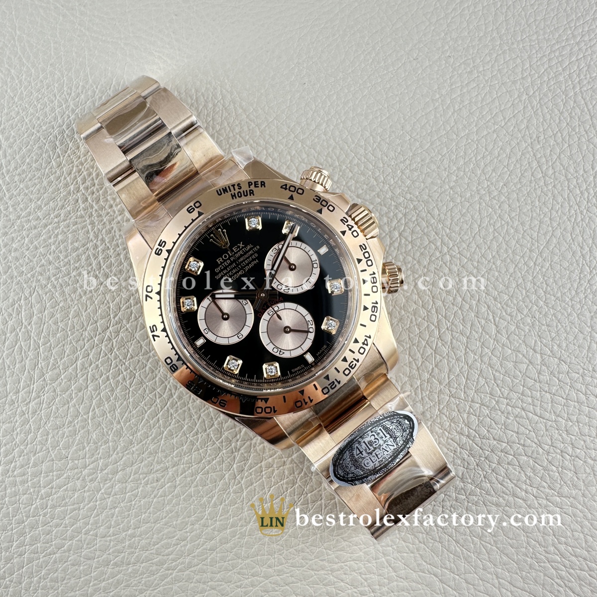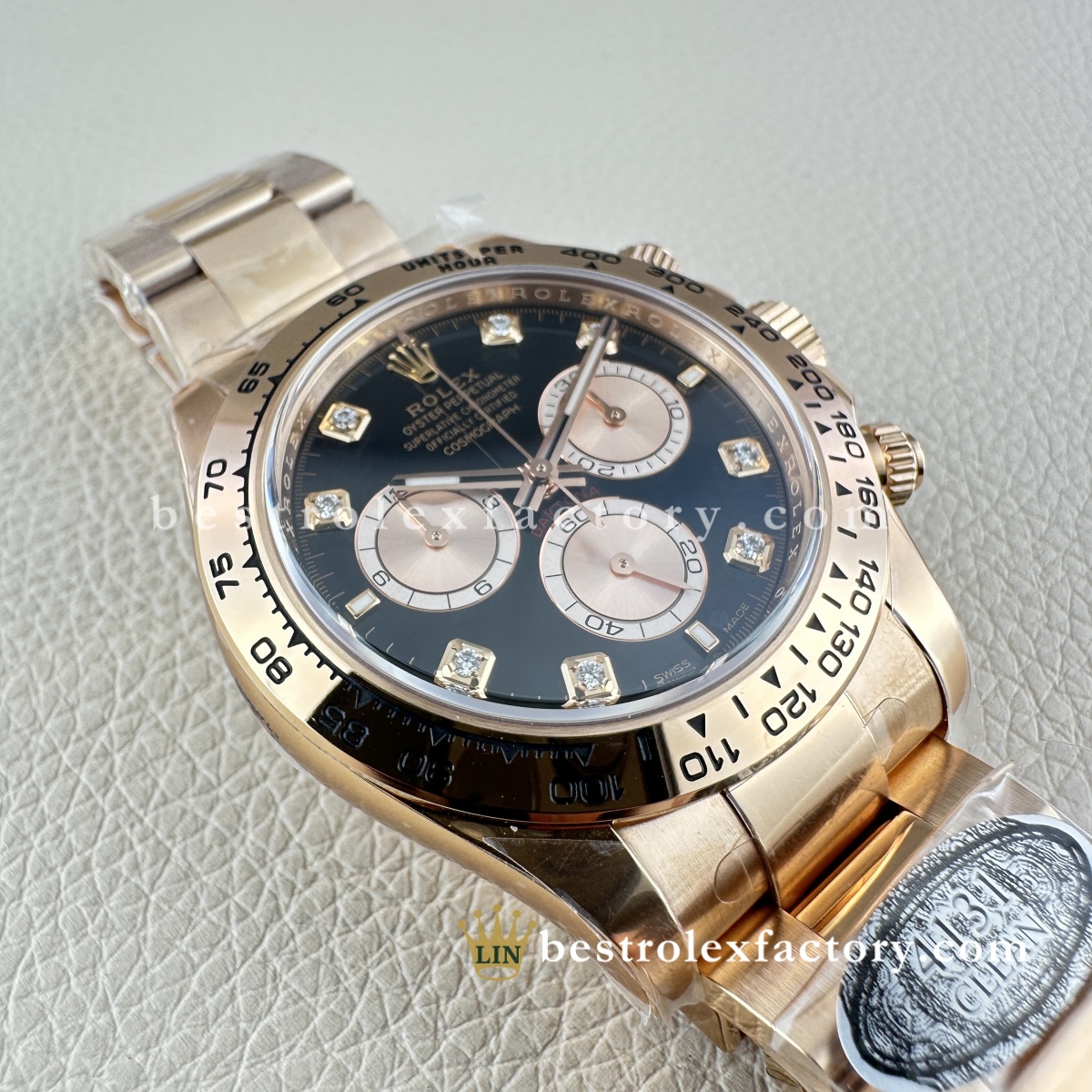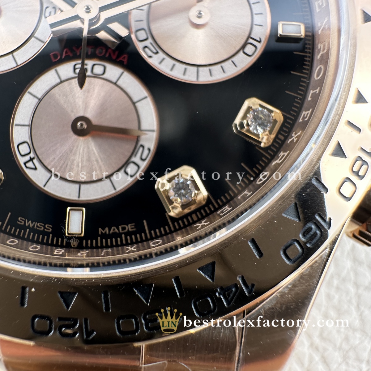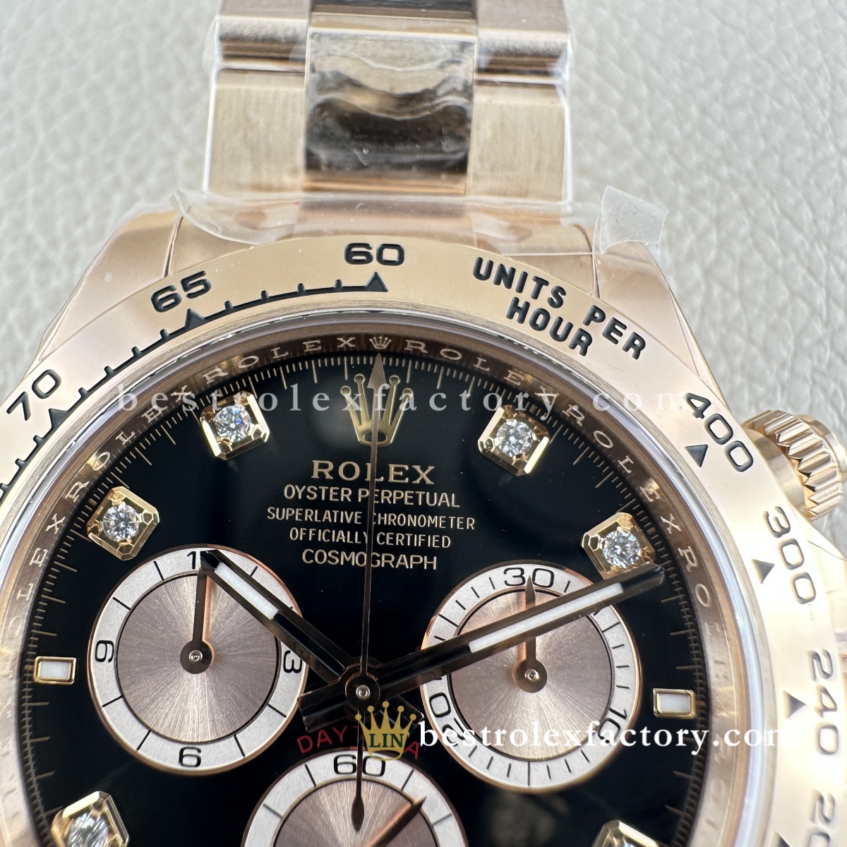 - Clean Factory Rolex Daytona 126505-0002 – Oro Everose, Quadrante Nero, Subquadranti Sundust & Diamanti Moissanite