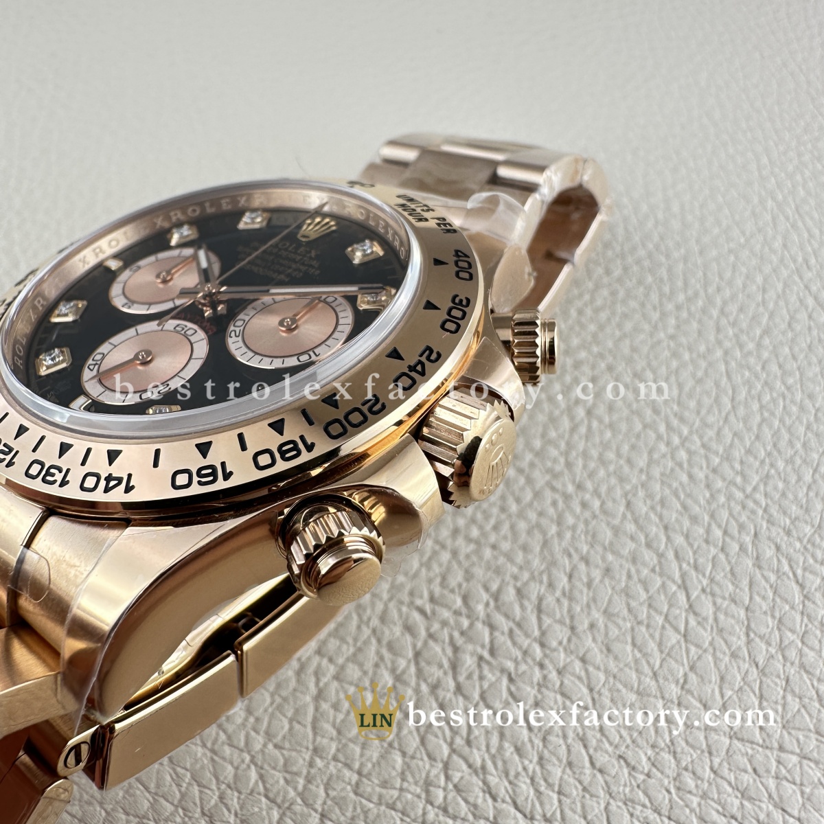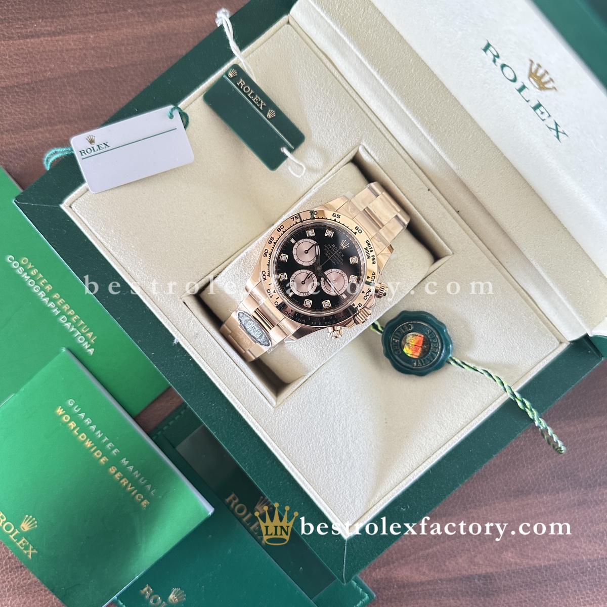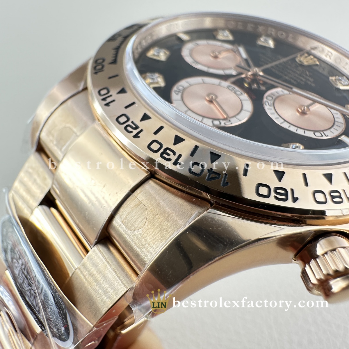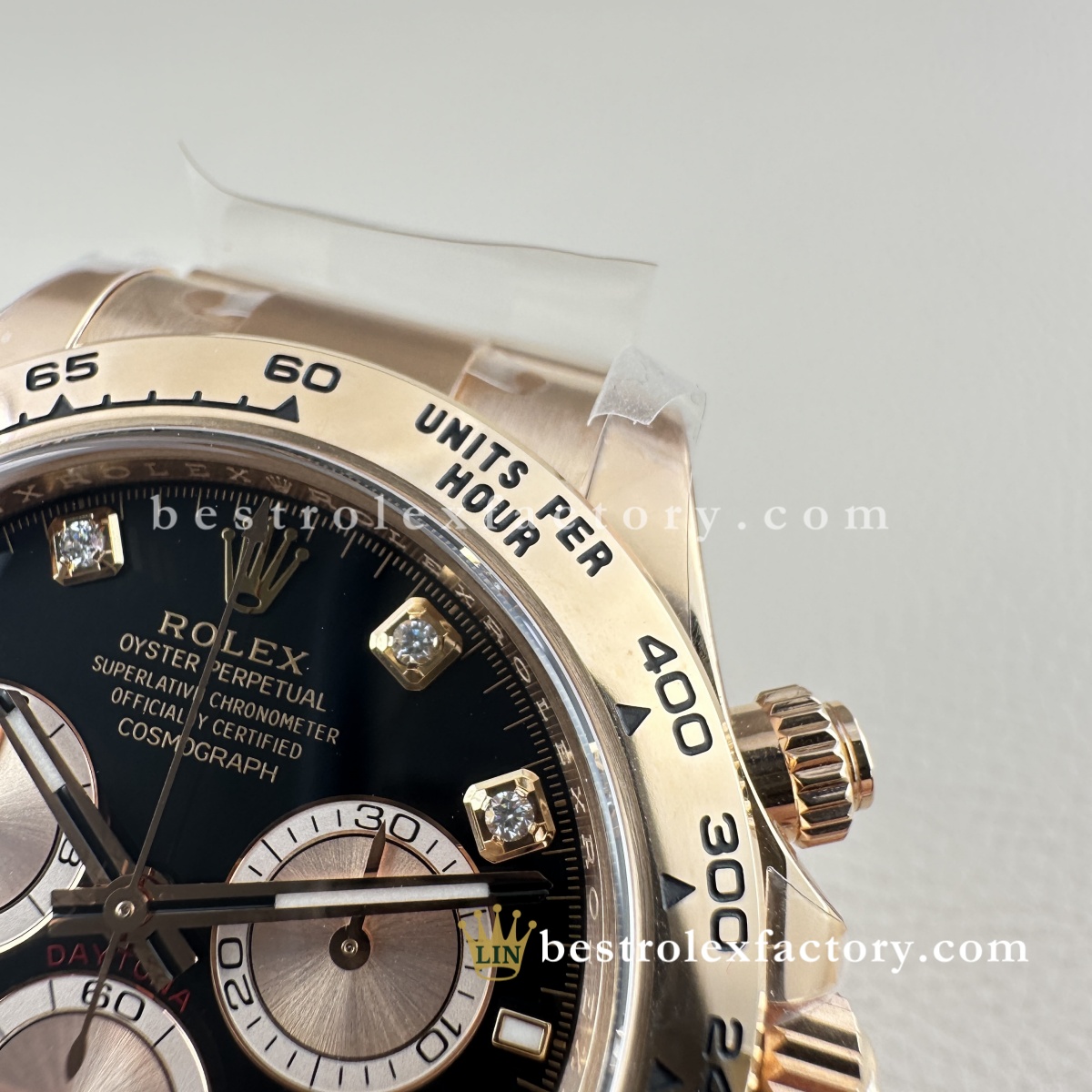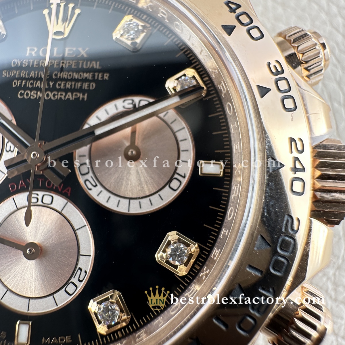 - Clean Factory Rolex Daytona 126505-0002 – Oro Everose, Quadrante Nero, Subquadranti Sundust & Diamanti Moissanite