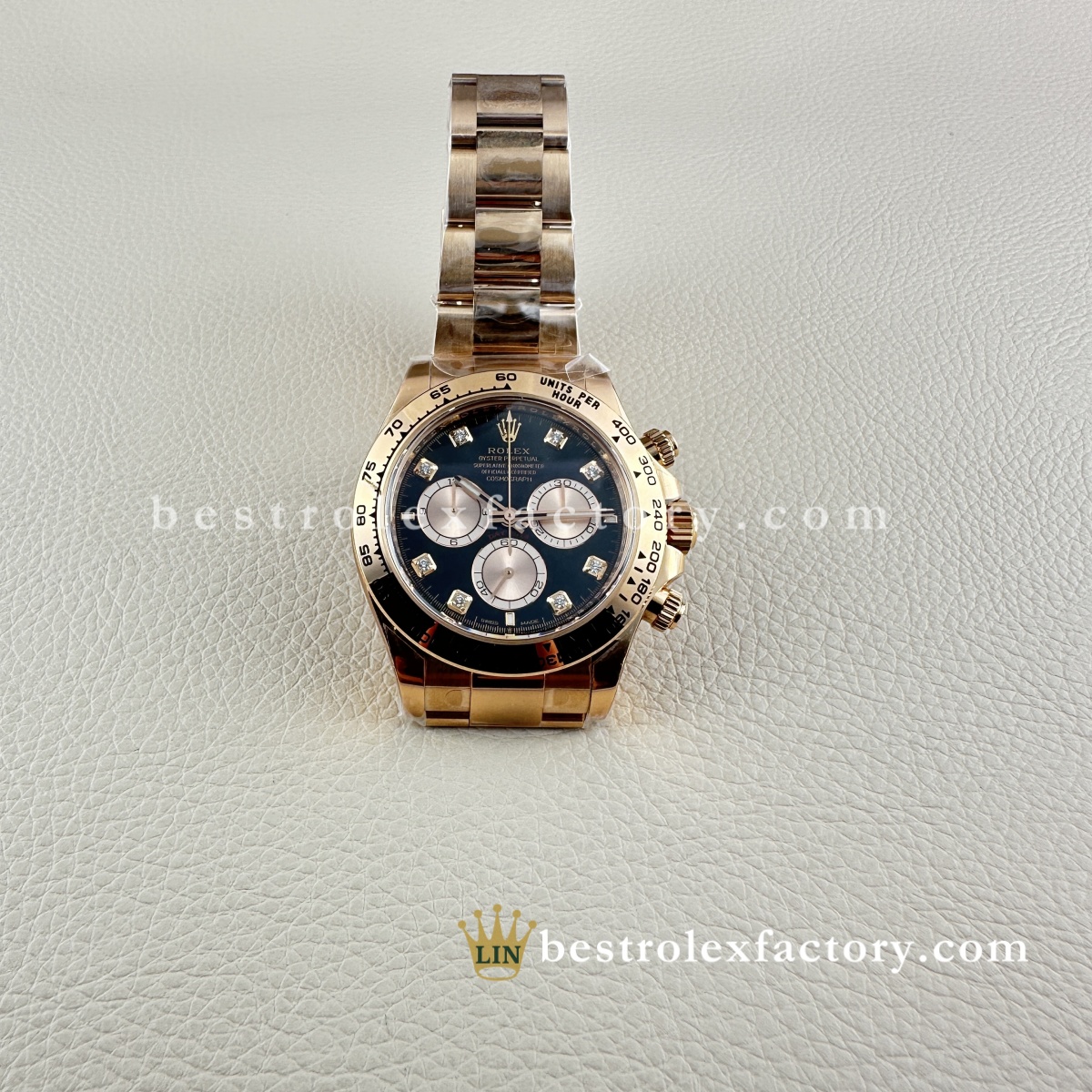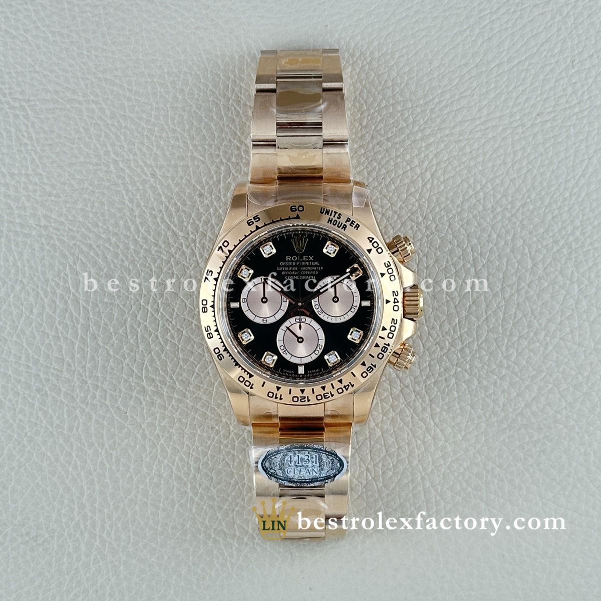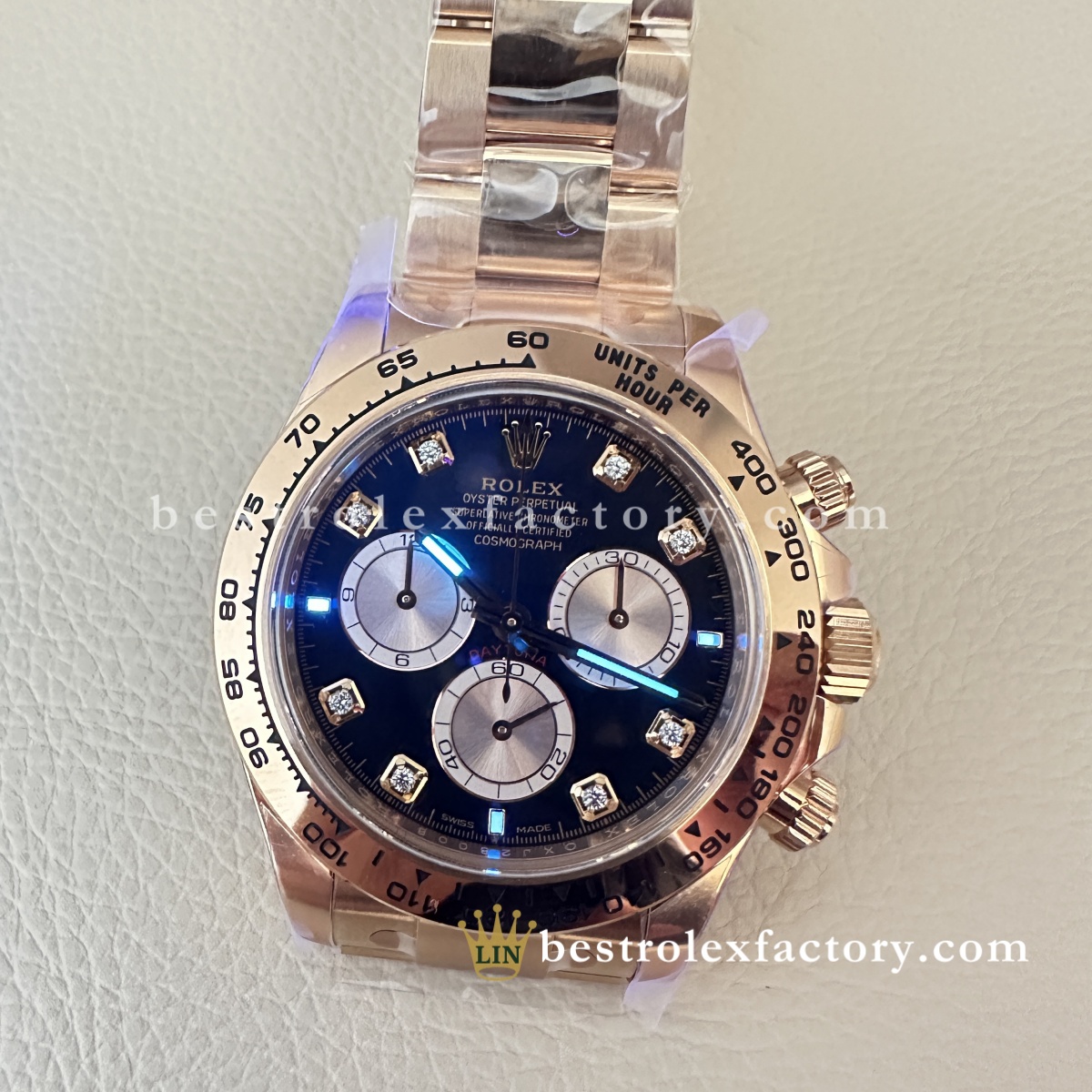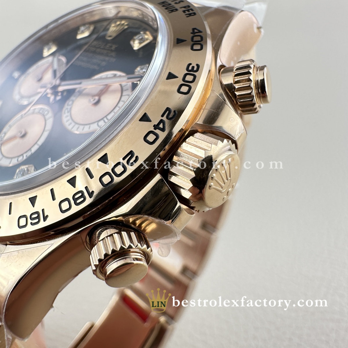 - Clean Factory Rolex Daytona 126505-0002 – Oro Everose, Quadrante Nero, Subquadranti Sundust & Diamanti Moissanite