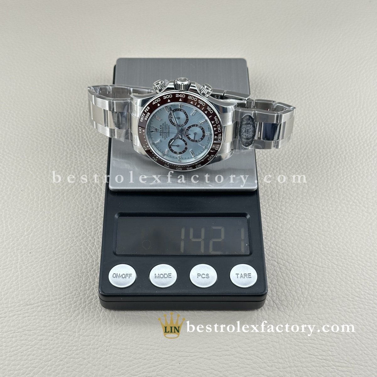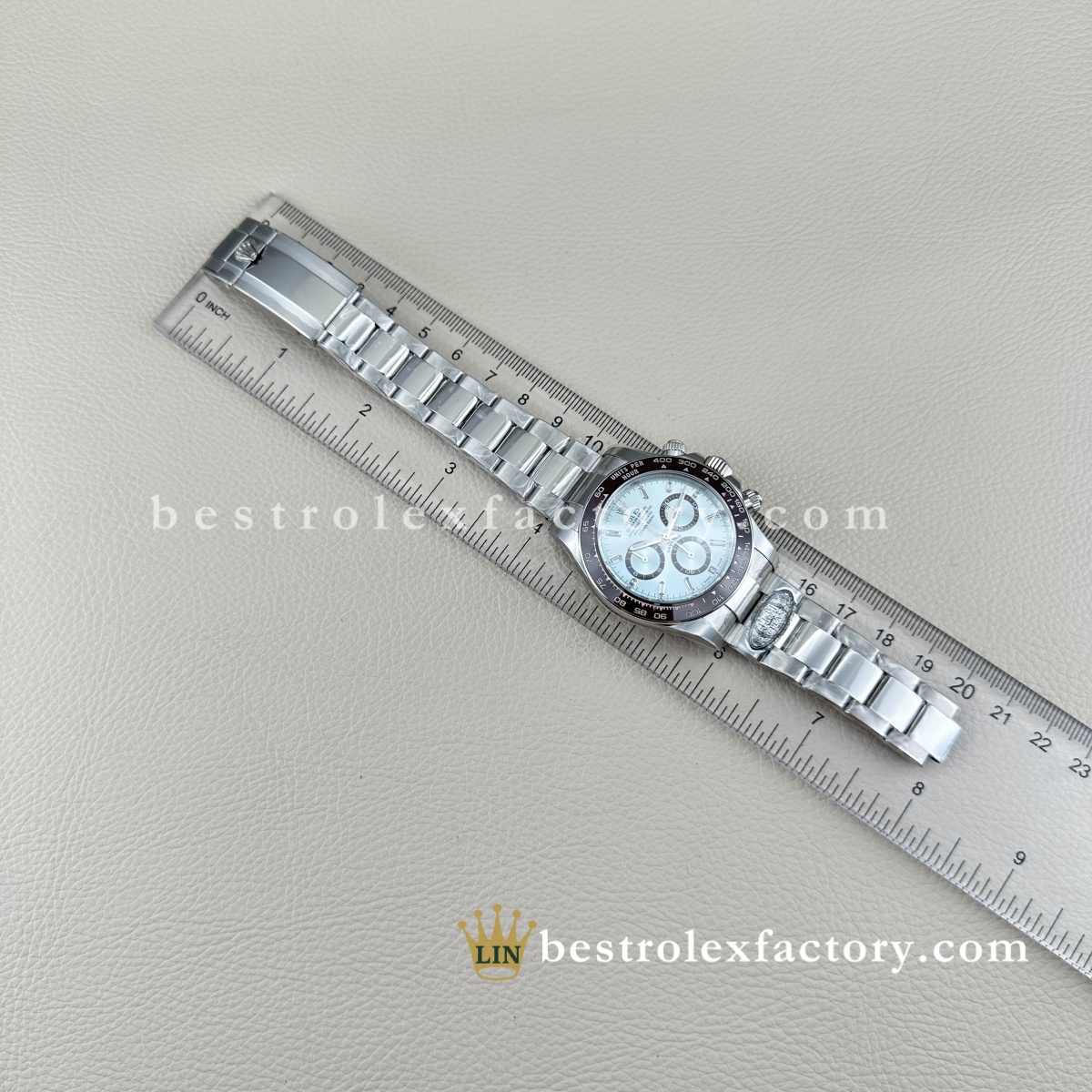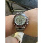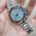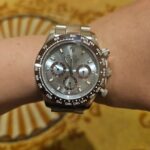 I’ve handled the gen platinum Daytona before and this replica gives a very similar wrist presence. The platinum-tone case feels cool and weighty.