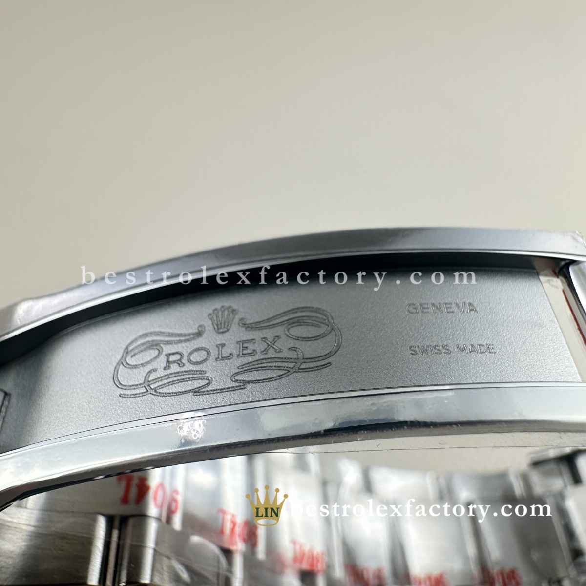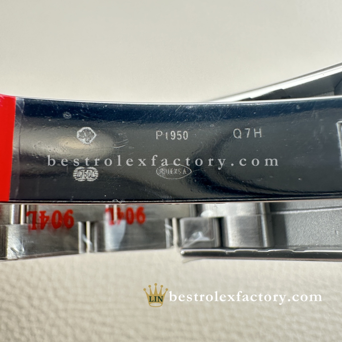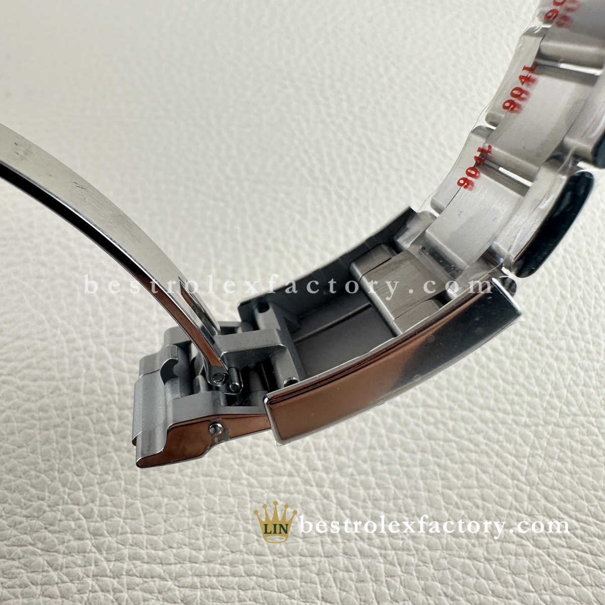 Clasp is tight and the Rolex crown logo on the buckle is deeply engraved. No laser-etched fakeness here — just quality finishing.