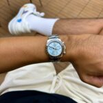 What stands out is the dial texture — the ice blue isn’t flat; it has a frosted sunburst effect that’s visible in both indoor and natural lighting.