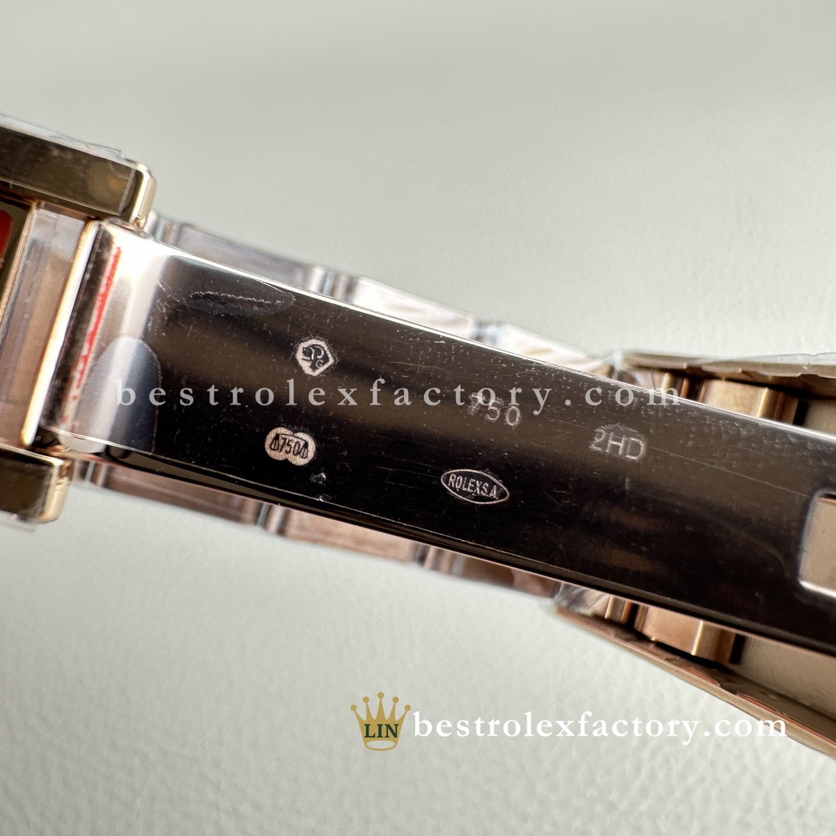 - Persino il bracciale richiede una disciplina produttiva eccezionale. Ogni maglia è placcata per garantire una tonalità identica alla cassa, senza transizioni visibili. La chiusura Oysterlock si aggancia con un clic pieno e sicuro e dona una sensazione di solidità senza rigidità, permettendo un comfort costante per tutto il giorno.