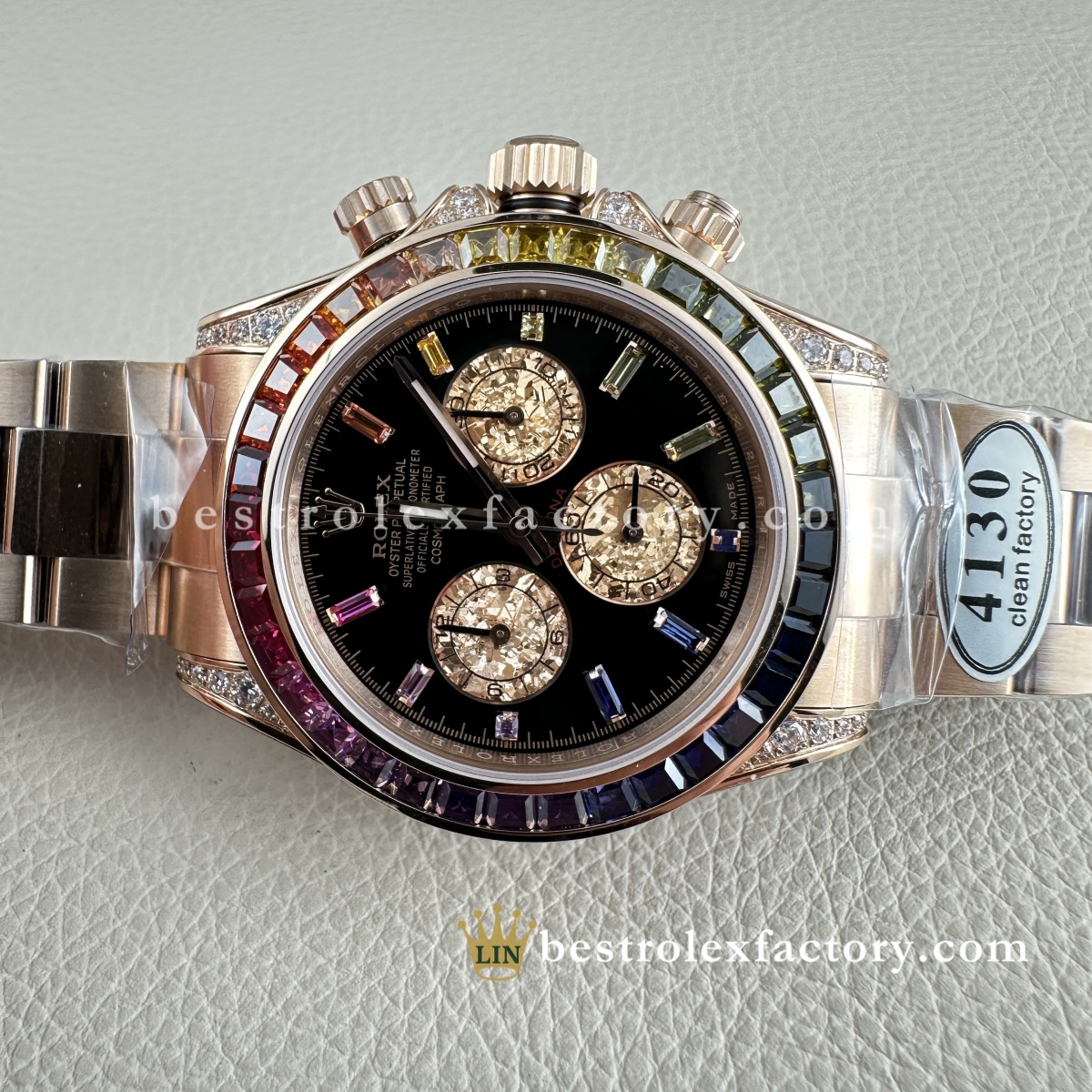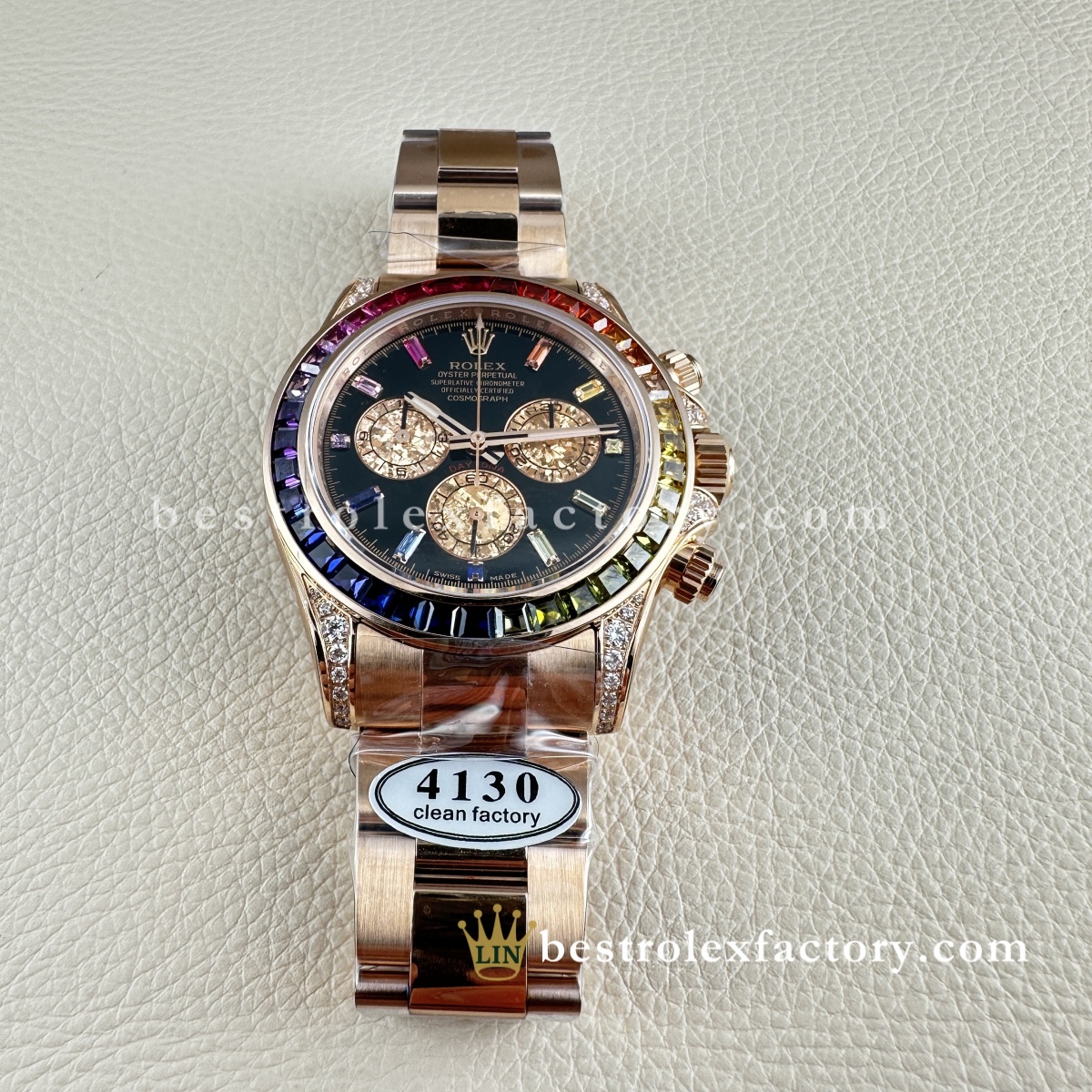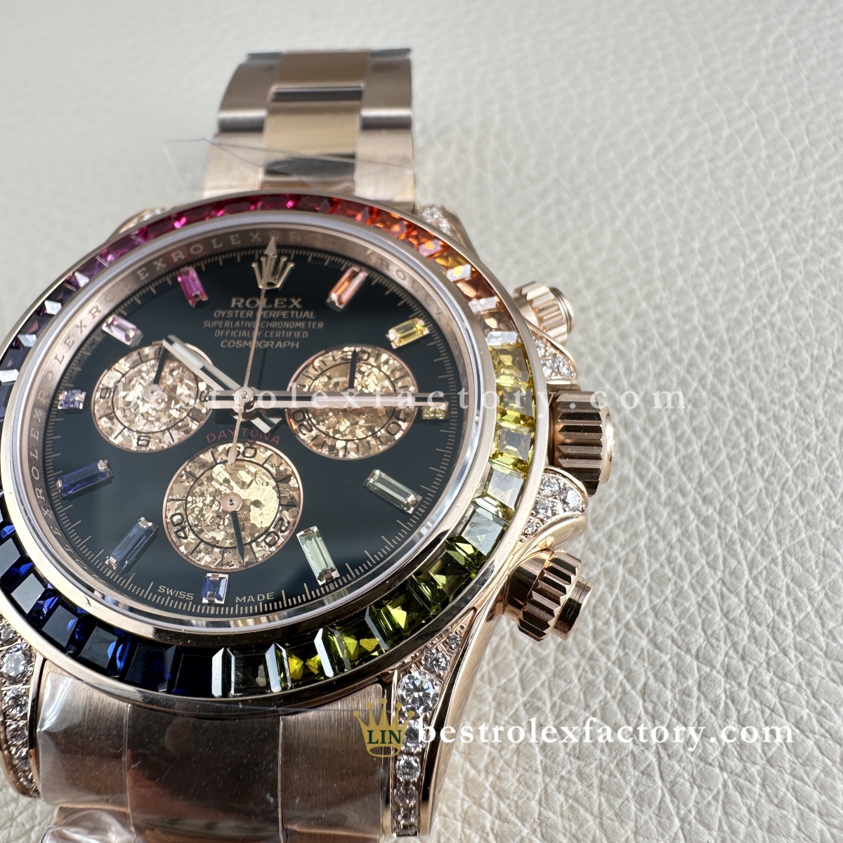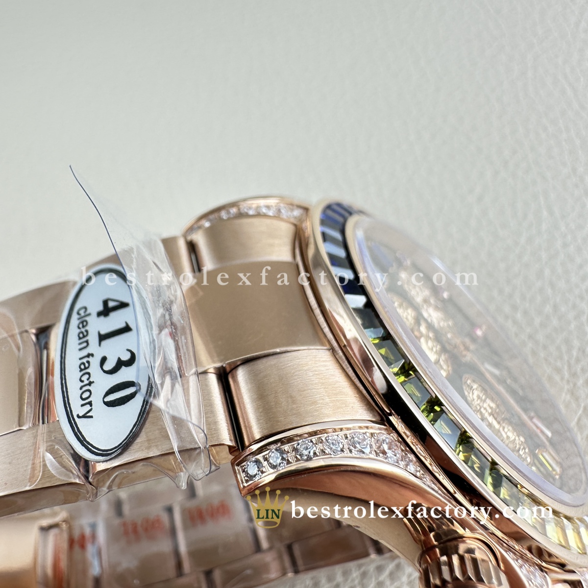 - Clean Factory Rolex Daytona Rainbow Oro Rosa 18K Baguette Moissanite e Ghiera Zaffiri Replica 1:1 Super Clone