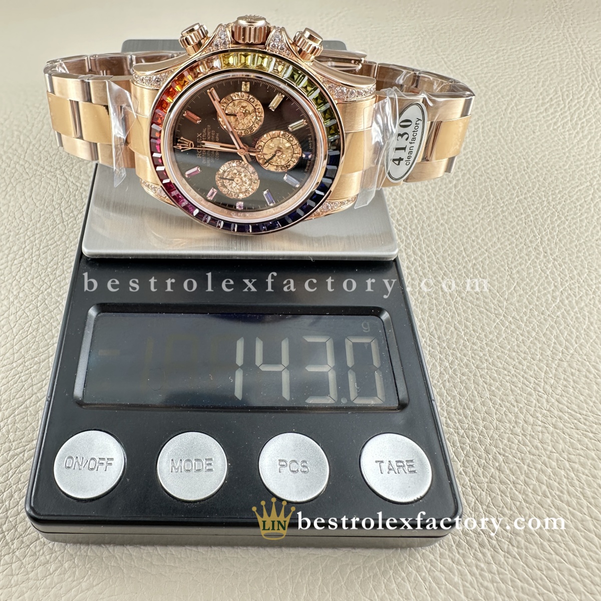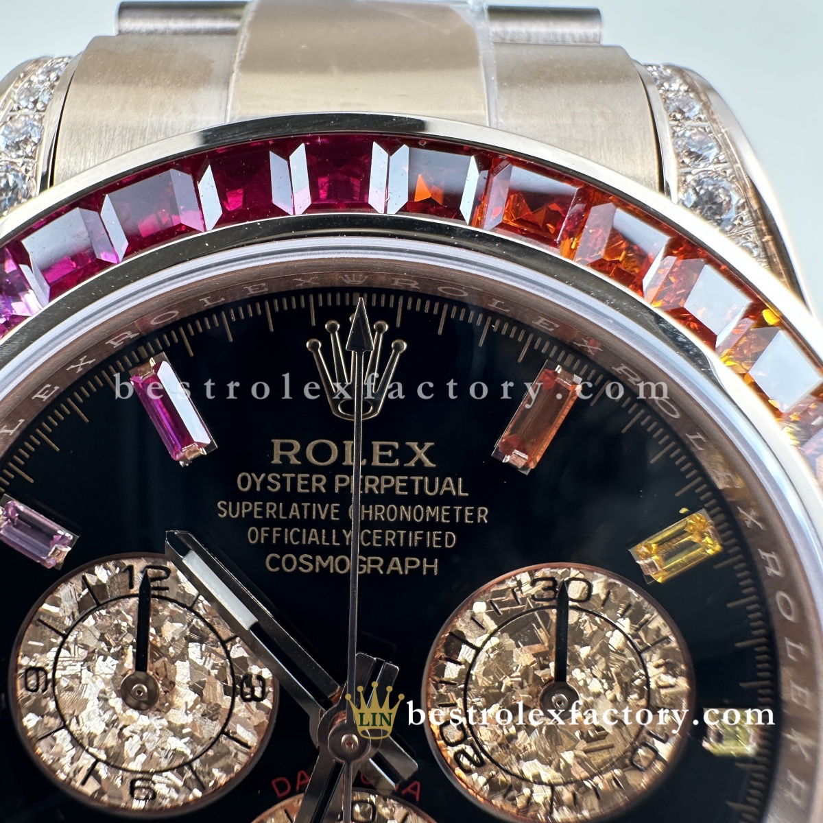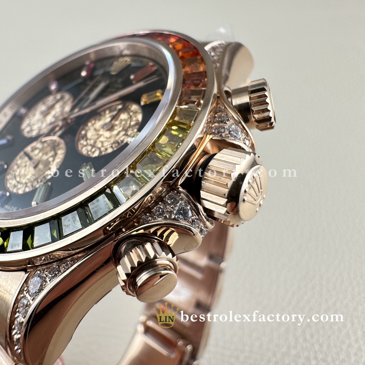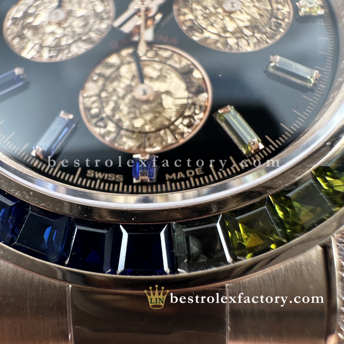 - Clean Factory Rolex Daytona Rainbow Oro Rosa 18K Baguette Moissanite e Ghiera Zaffiri Replica 1:1 Super Clone
