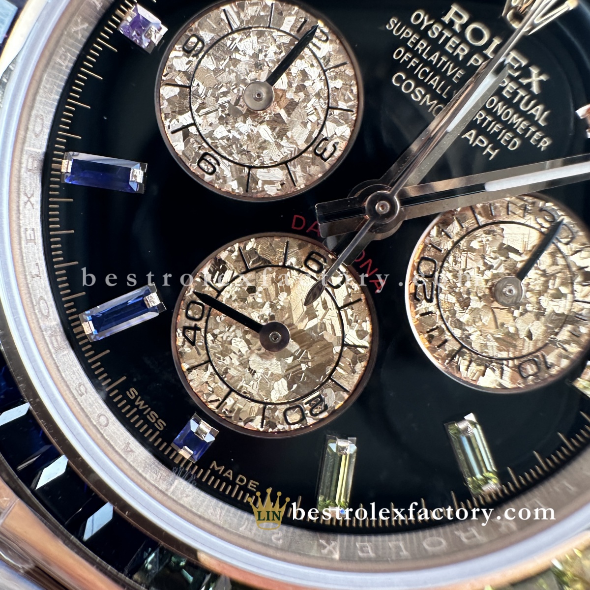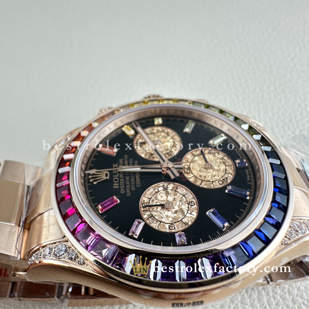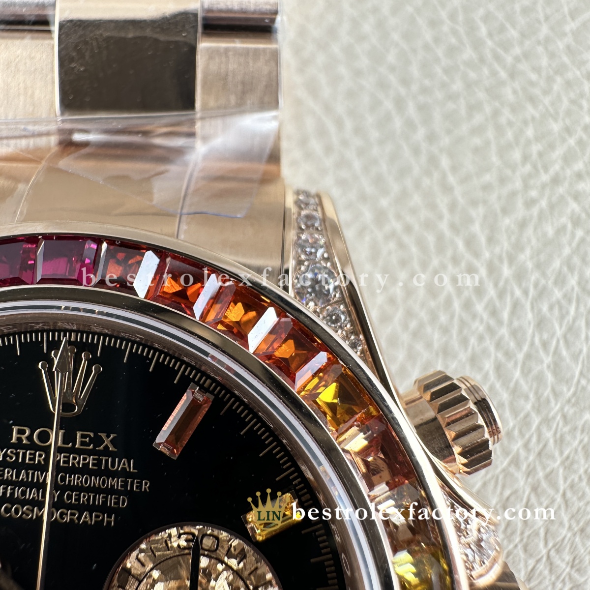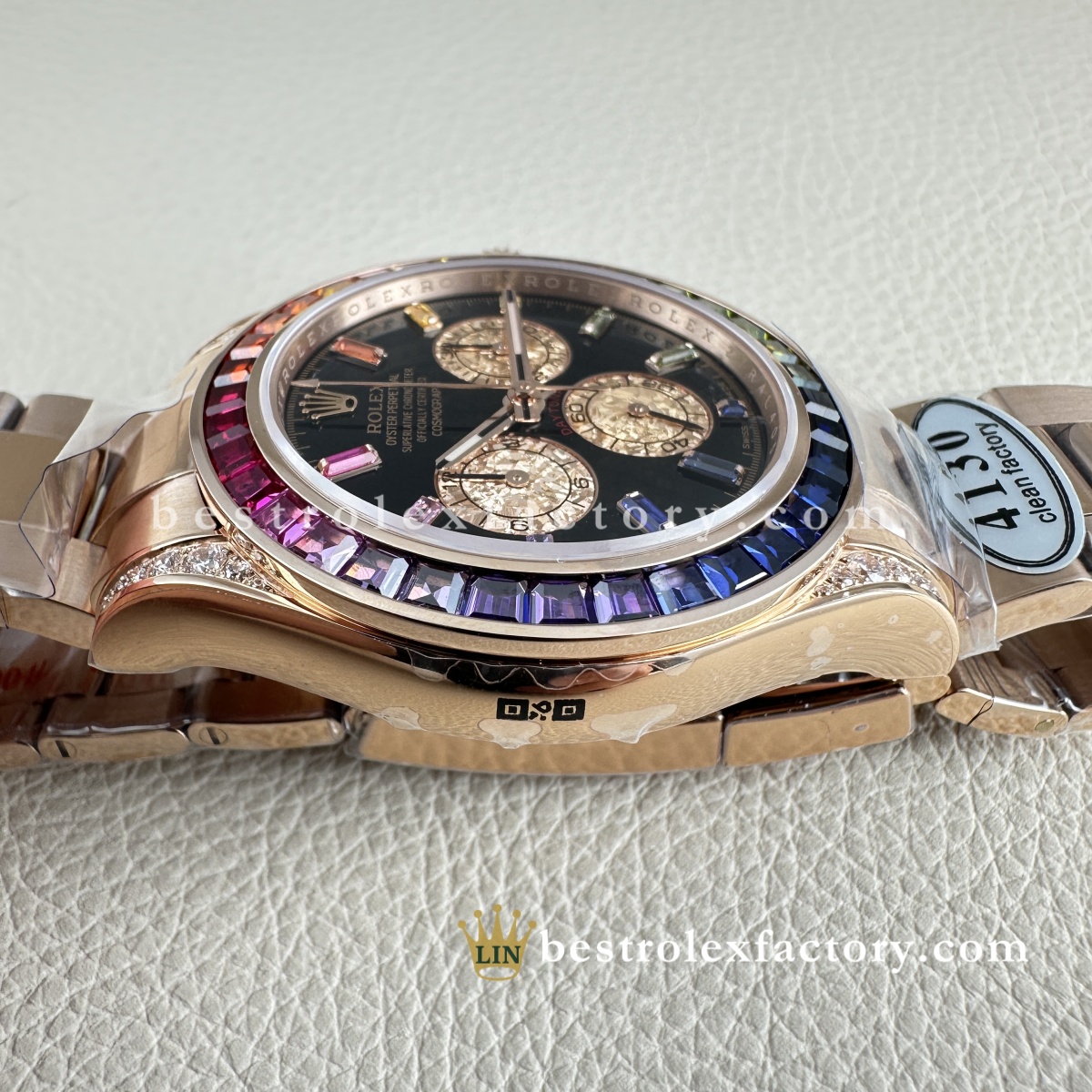 - Clean Factory Rolex Daytona Rainbow Oro Rosa 18K Baguette Moissanite e Ghiera Zaffiri Replica 1:1 Super Clone