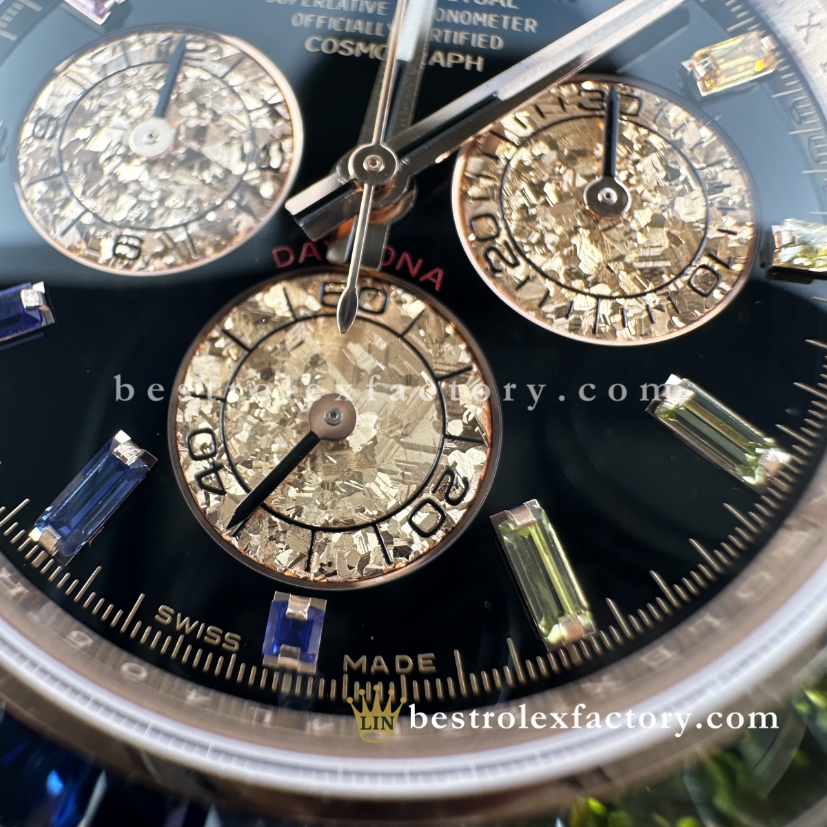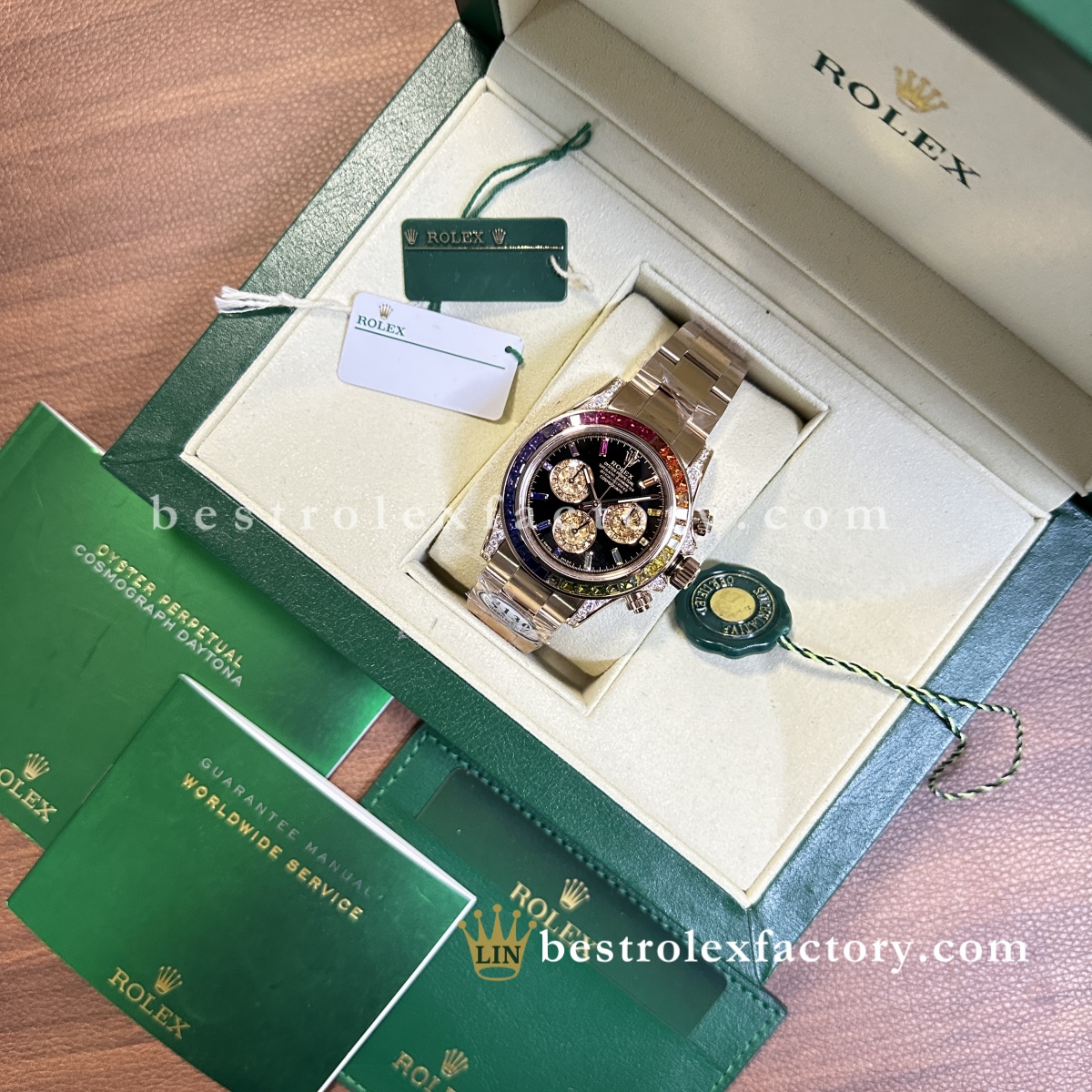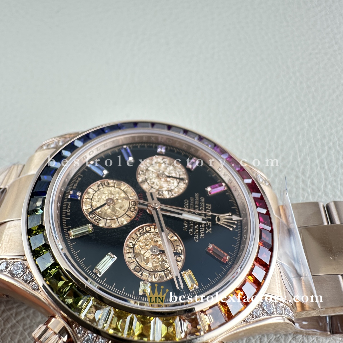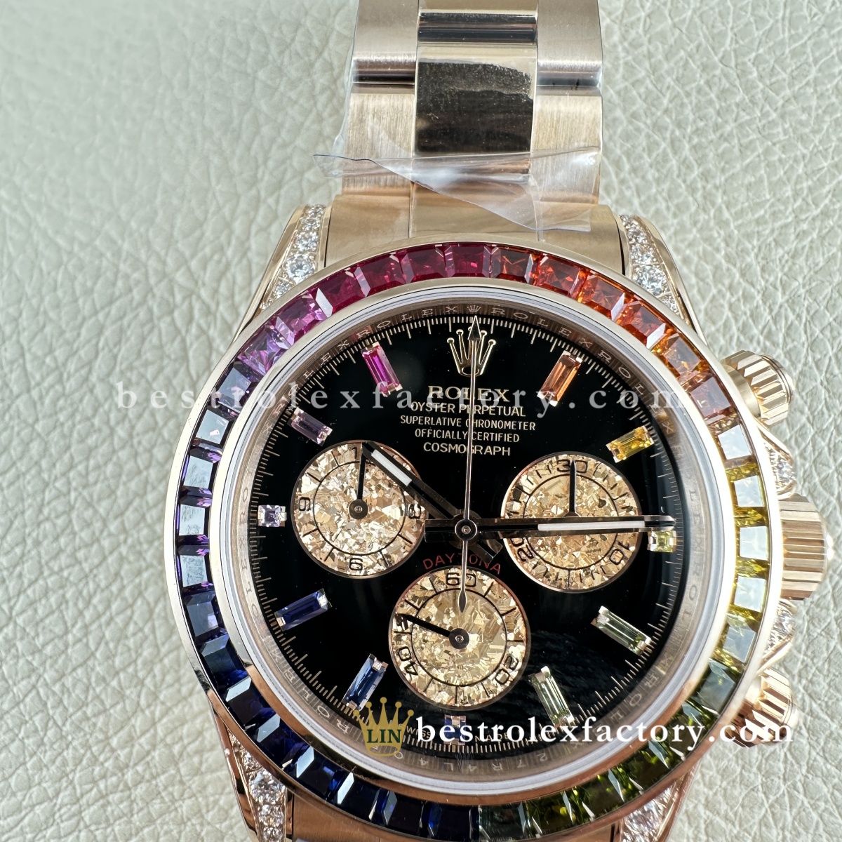 - Clean Factory Rolex Daytona Rainbow Oro Rosa 18K Baguette Moissanite e Ghiera Zaffiri Replica 1:1 Super Clone