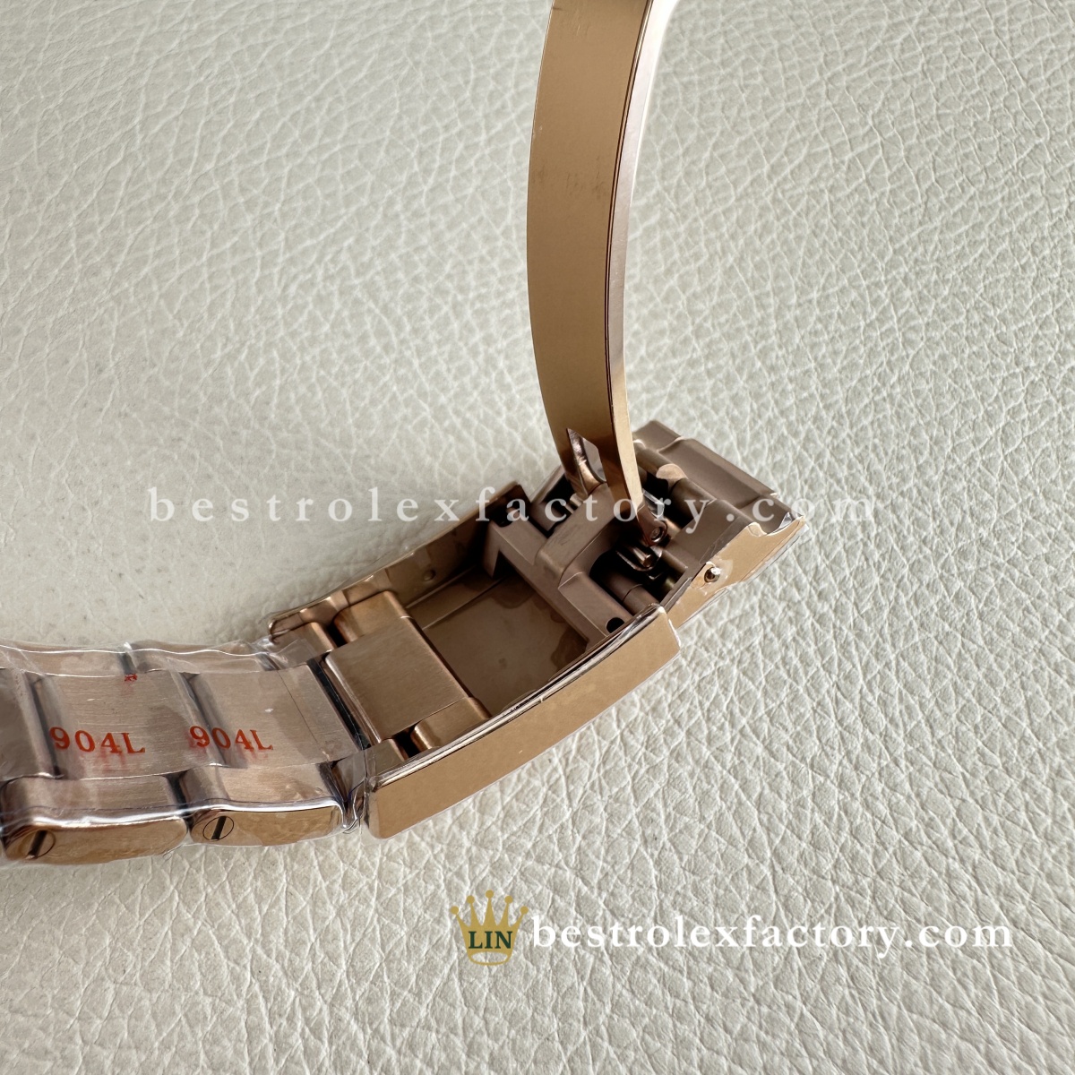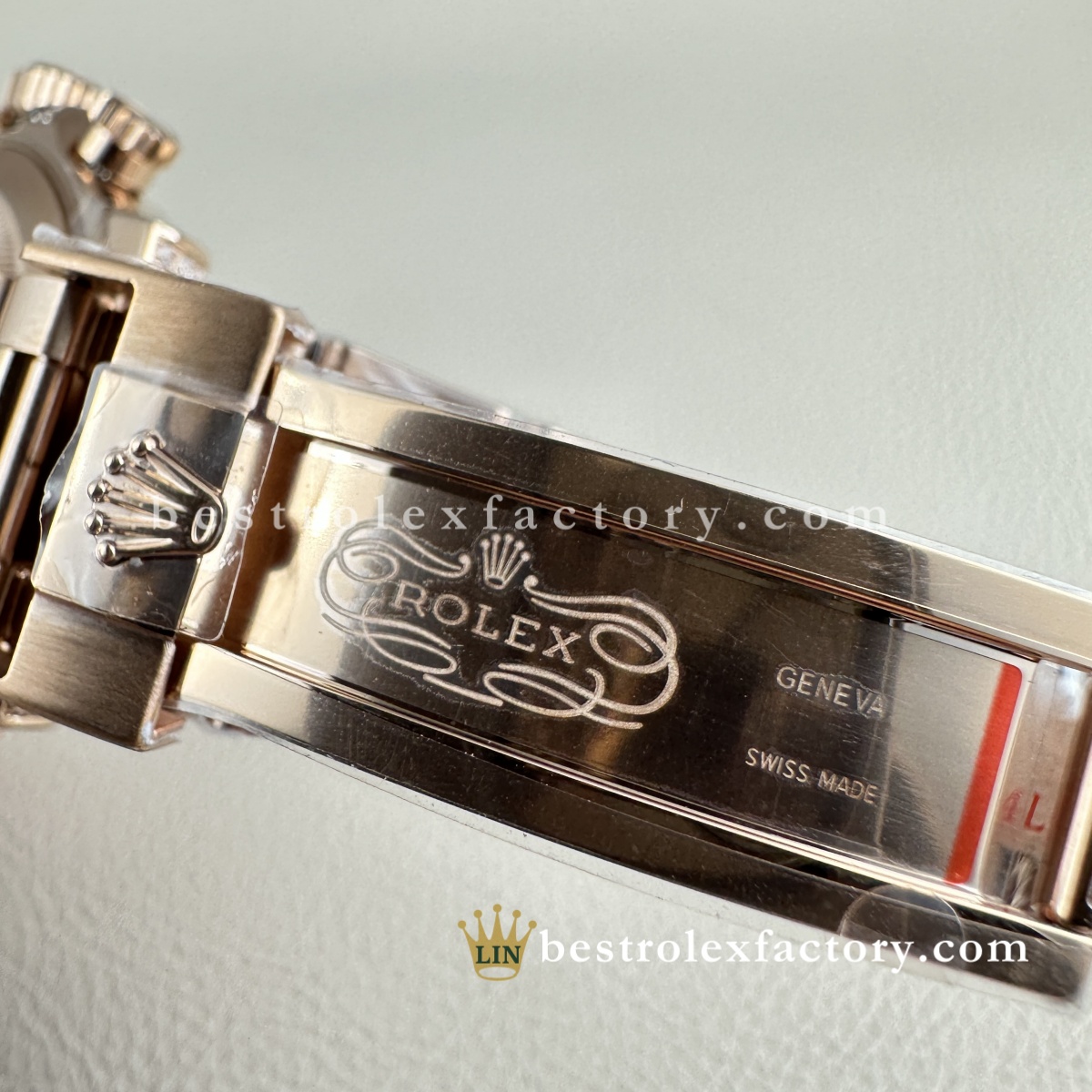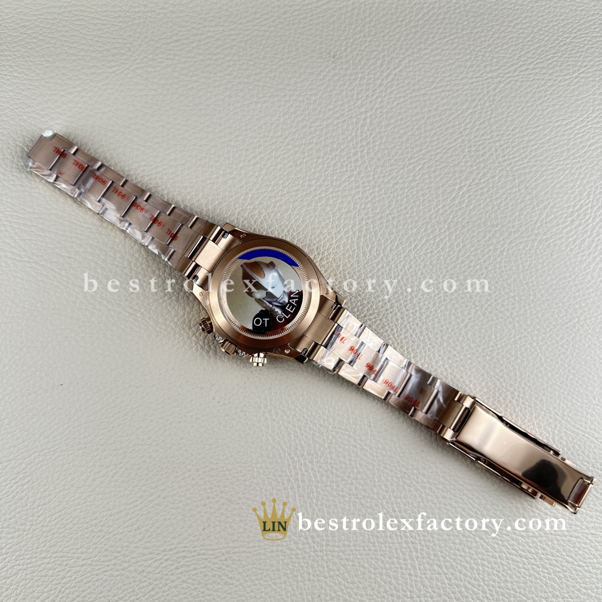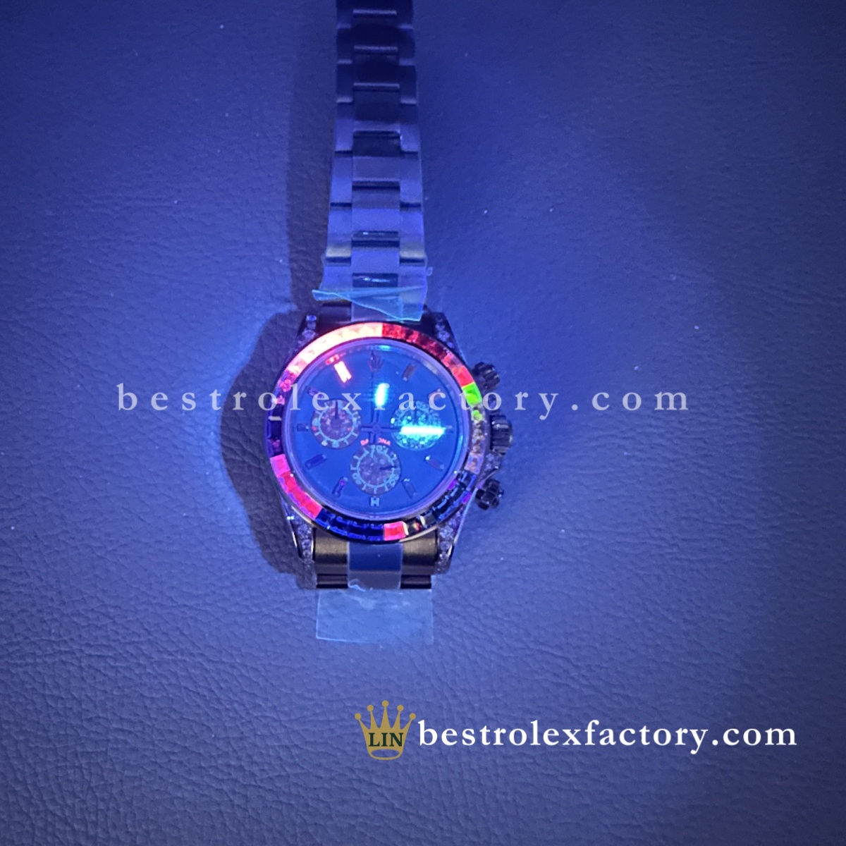 - Il Rolex Daytona Rainbow di Clean Factory in oro rosa 18K è molto più di una dichiarazione di stile: rappresenta l’apice della maestria nella produzione di repliche di alta gamma. Combinando una ghiera in zaffiri rainbow, una cassa interamente incastonata con baguette di moissanite e un nuovissimo movimento Dandong 4130, questa creazione spinge ogni aspetto della manifattura ai suoi limiti.