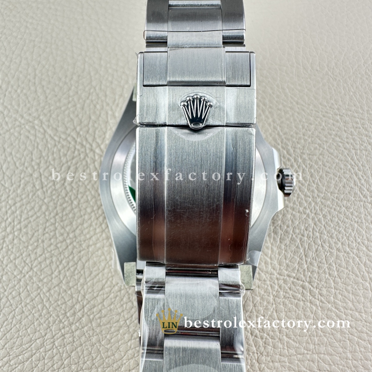 - Cassa in acciaio 904L con satinatura corretta. Niente finiture lucide che gridano “falso” a distanza. Questo è un vero orologio strumento, e si vede. Lunetta fissa in acciaio con scala 24 ore incisa. Niente ceramica, niente fronzoli. Solo funzionalità.