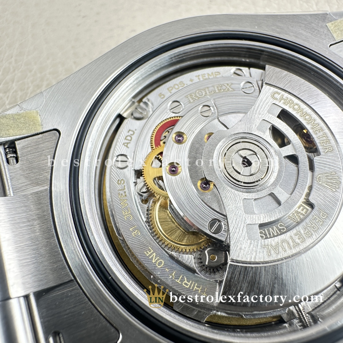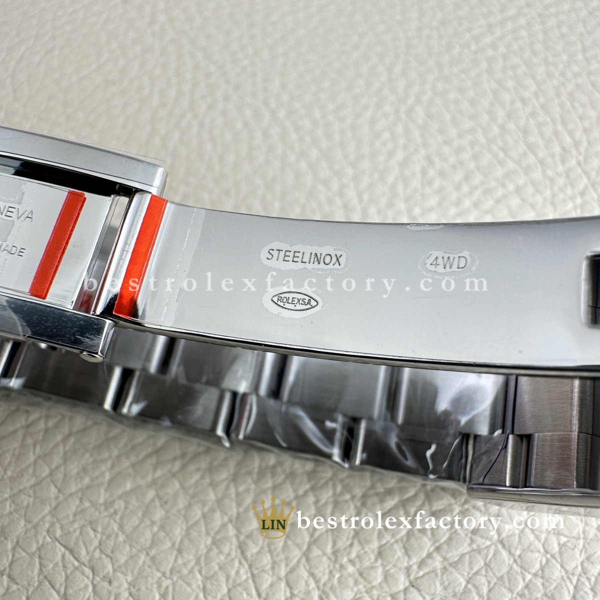 - Bracciale Oyster solido con finali perfettamente accoppiati e chiusura Oysterlock che si chiude con uno scatto rassicurante. Nessun gioco, nessun rumore. Impermeabilità testata a 100 metri – perché se lo chiami Explorer, deve davvero esplorare.