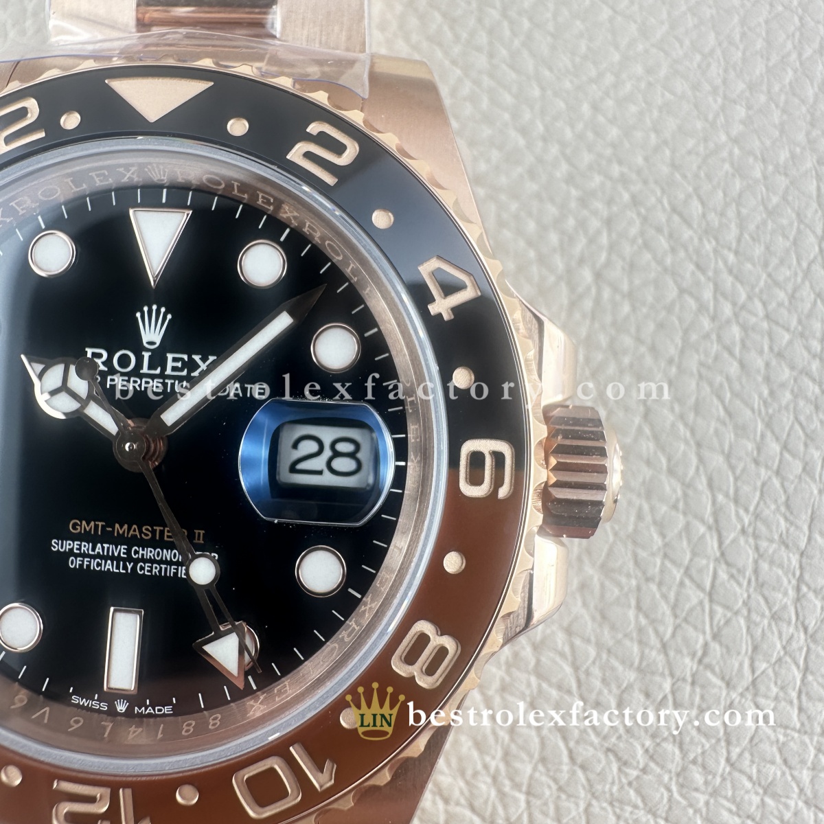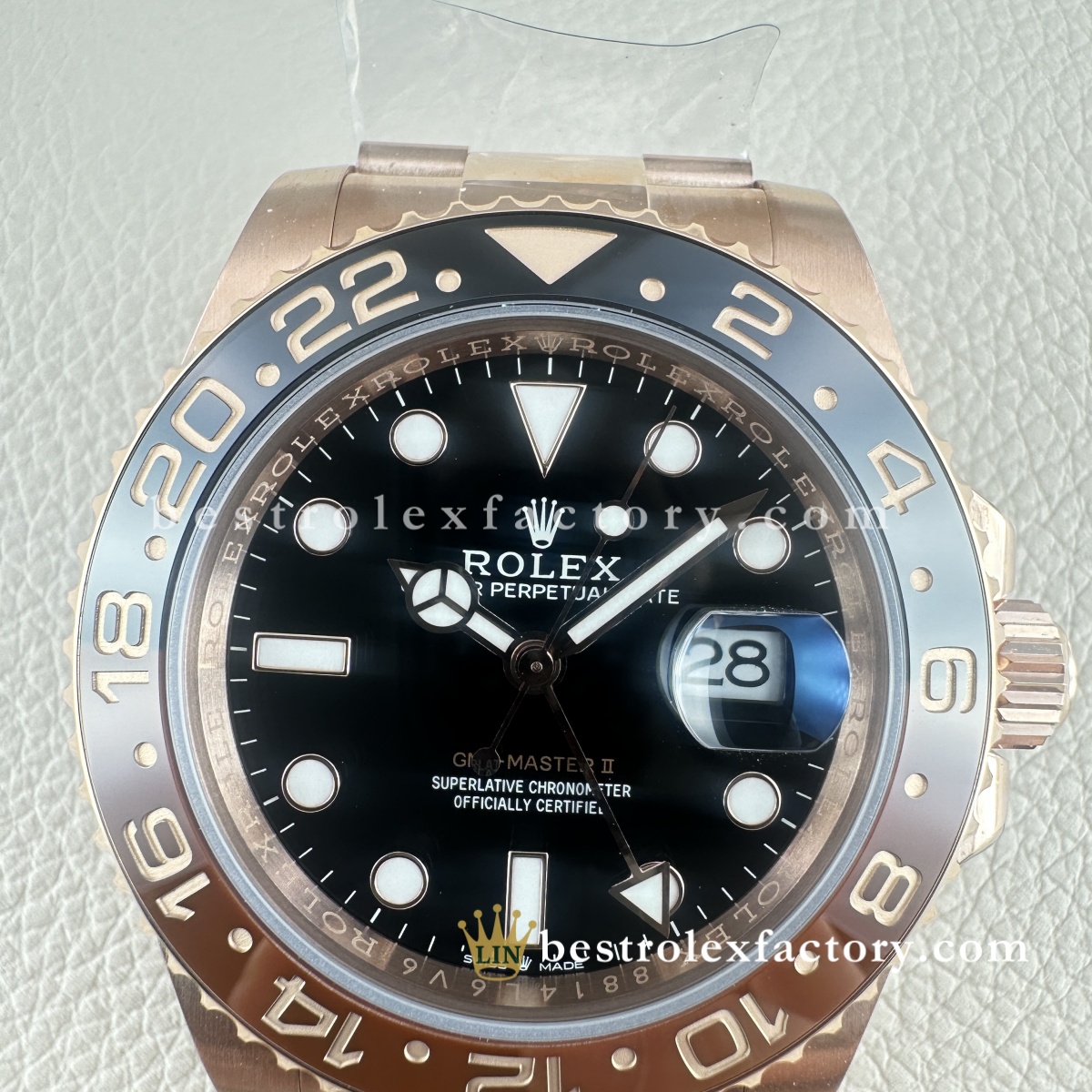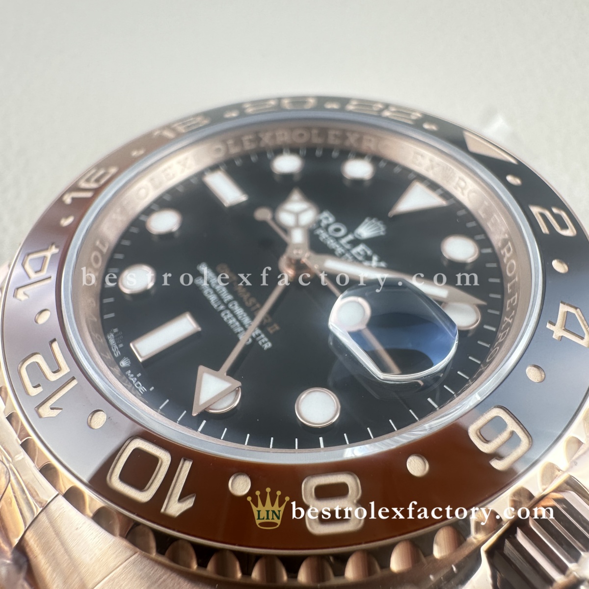 The Clean Factory GMT-Master II Root Beer is an outstanding piece. The rose gold tone is beautifully balanced — not overly bright, and very close to the original. The ceramic bezel has excellent color contrast, and the overall finishing is top-tier. Highly recommended for anyone seeking a refined and accurate homage.