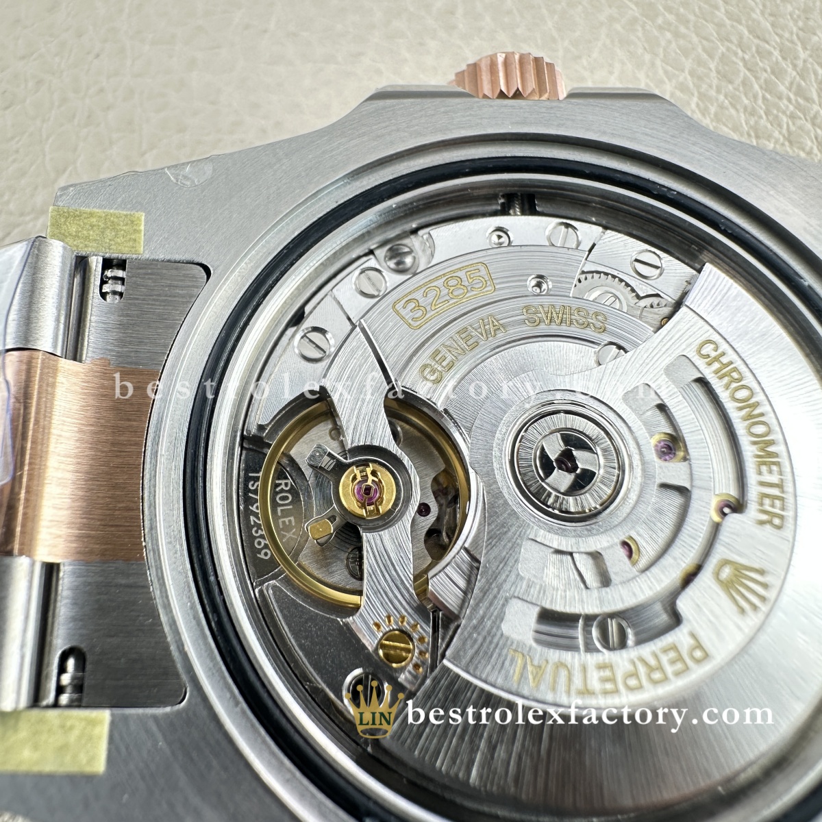| CASE | – 40mm Real Rose gold wrapped on Solid 904L Stainless steel monobloc construction – Screw-down case-back and winding crown – ROLEXROLEX laser engraving on Rehaut ring – DLC scratch-protection coating, Real Rose gold about 4um thickness wrapped. Ensure that it will not fade and is healthy Skin-friendly. – Dimensions 100% identical with genuine. All parts can be interchanged with an original, Not even some of the jewelers’ experts could tell the difference! |