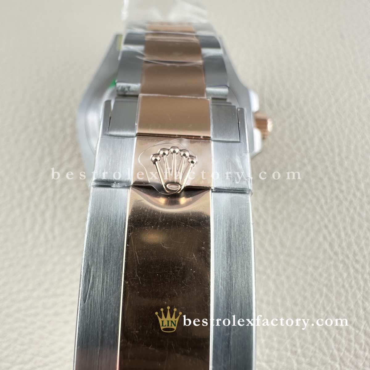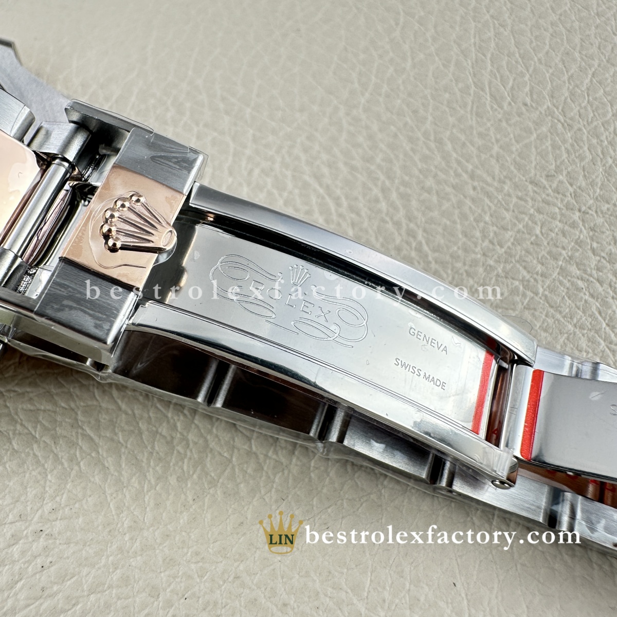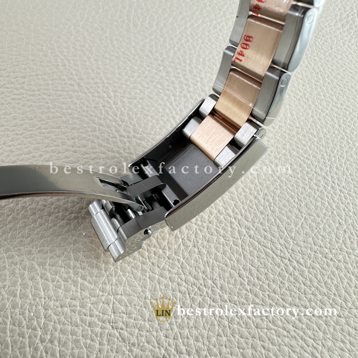 | BRACELET | – Oyster, Three-piece links two tone – Insider Solid 904L Stainless steel with DLC scratch-protection coating, Real Rose gold about 4um thickness wrapped.(two sides of the middle in gold too) Ensure that it will not fade and is healthy Skin-friendly. – Solid threaded screws – Folding safety clasp with Easylink 5 mm comfort extension link for quick set |