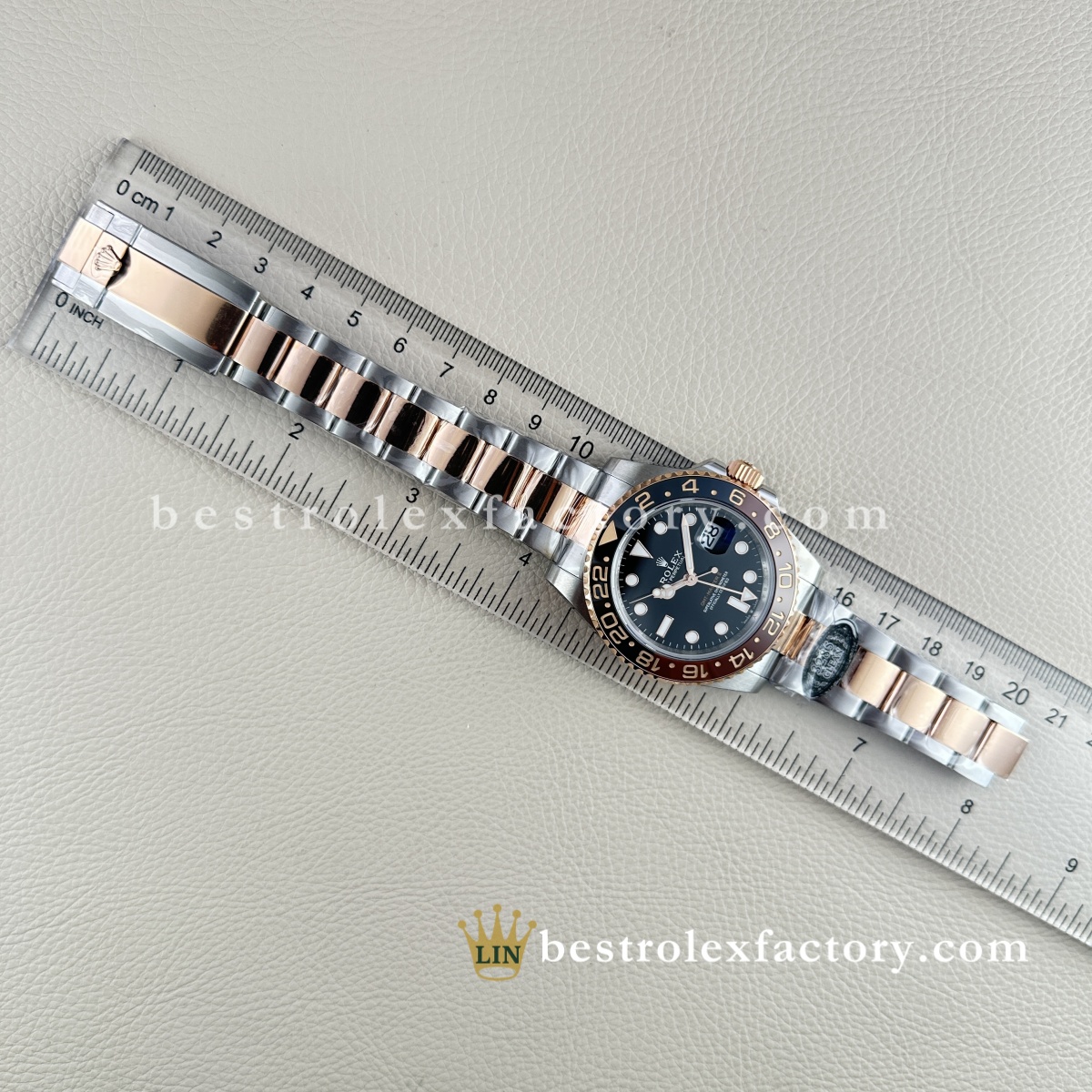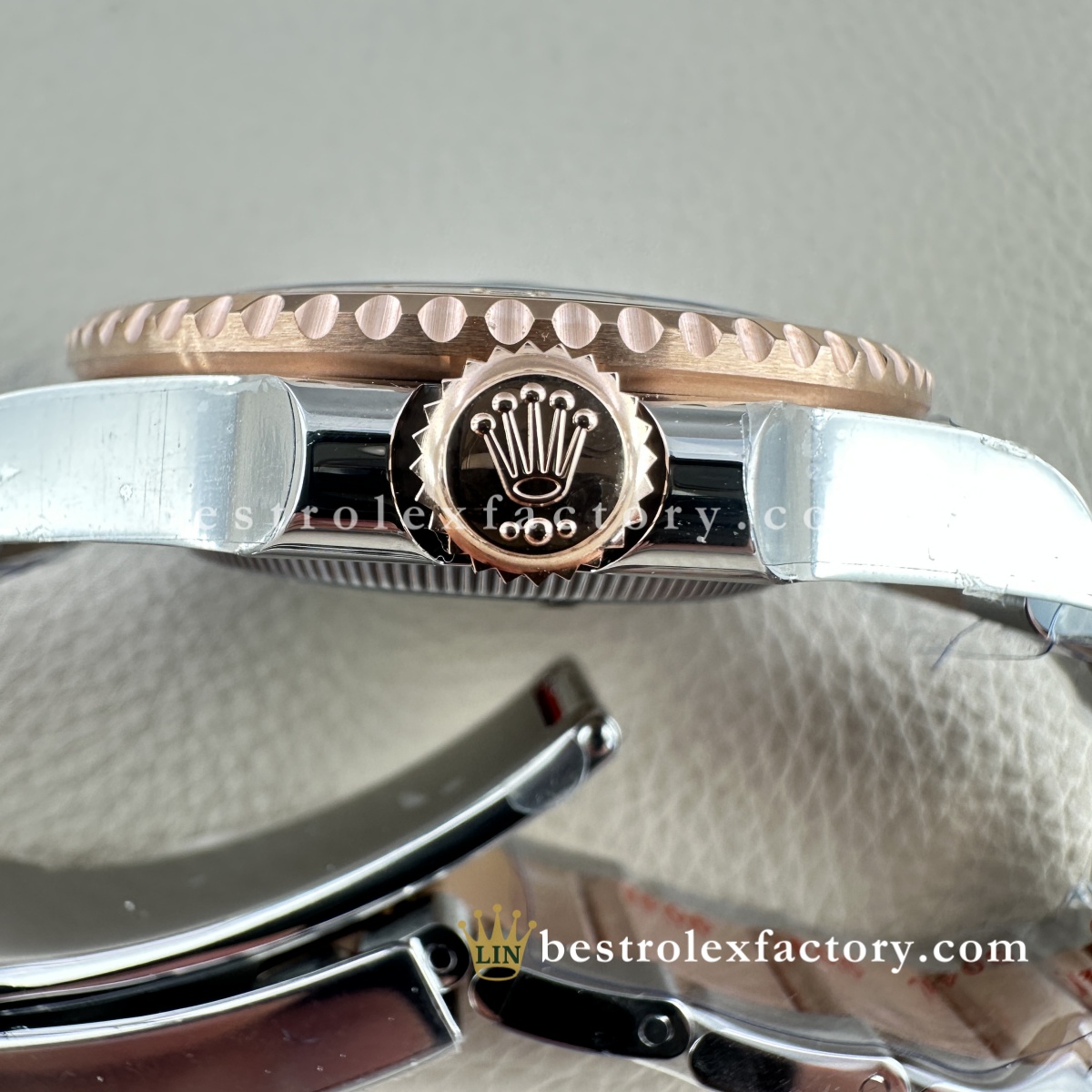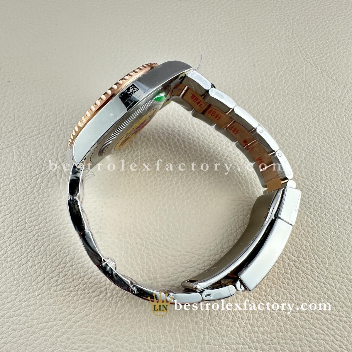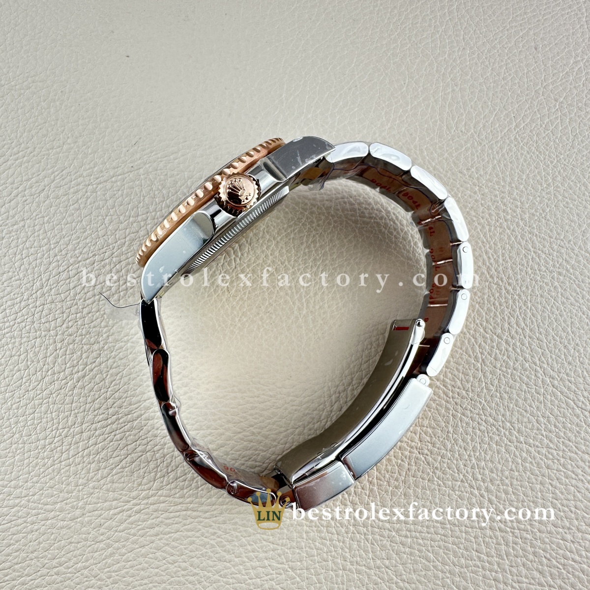 | BRACELET | – Oyster, Three-piece links two tone – Insider Solid 904L Stainless steel with DLC scratch-protection coating, Real Rose gold about 4um thickness wrapped.(two sides of the middle in gold too) Ensure that it will not fade and is healthy Skin-friendly. – Solid threaded screws – Folding safety clasp with Easylink 5 mm comfort extension link for quick set |