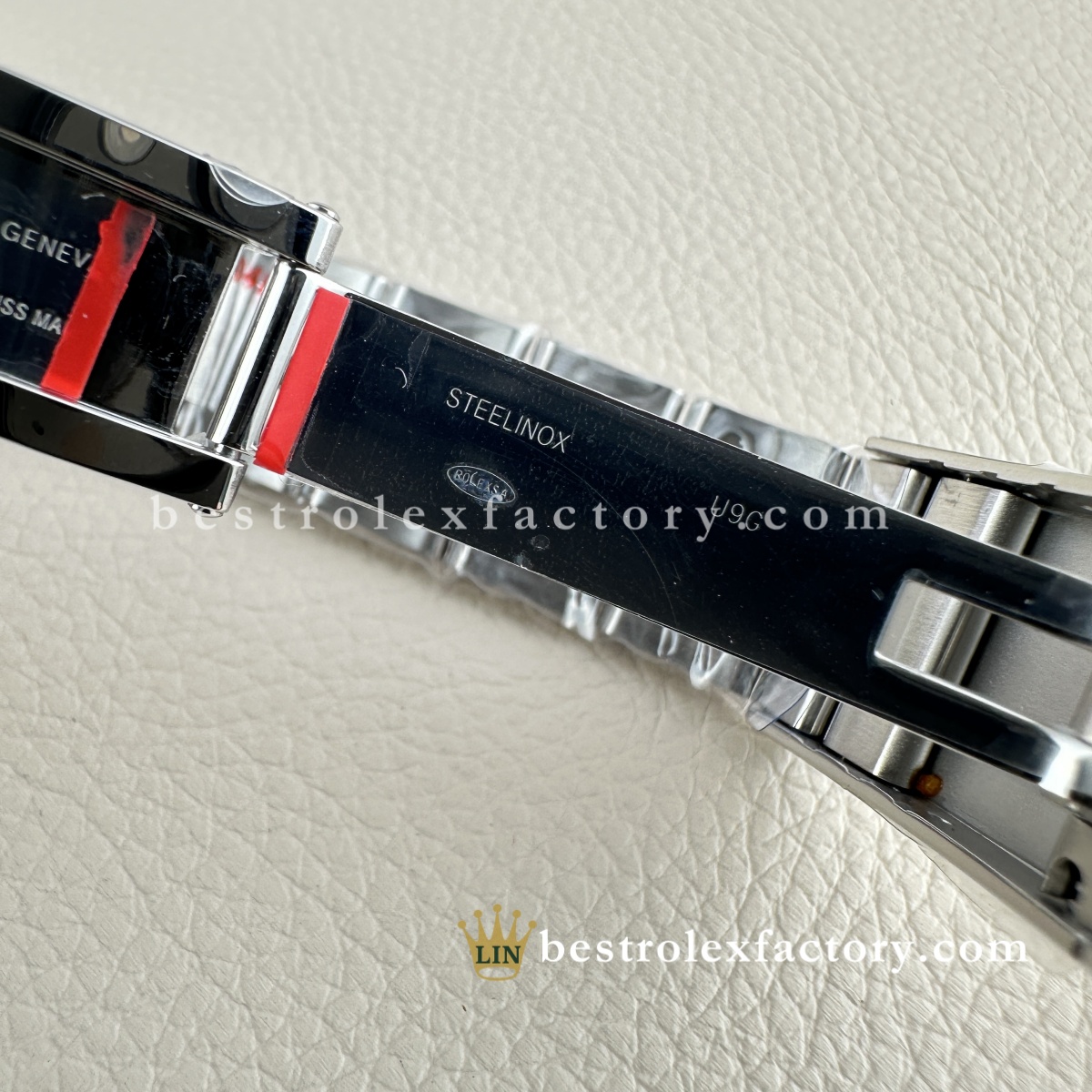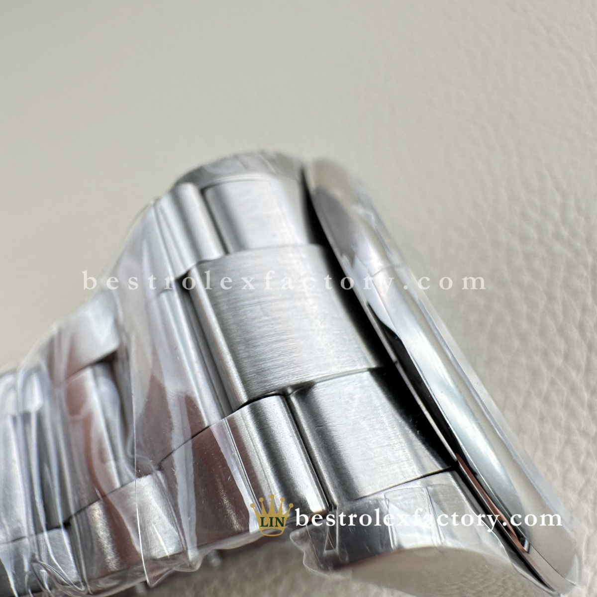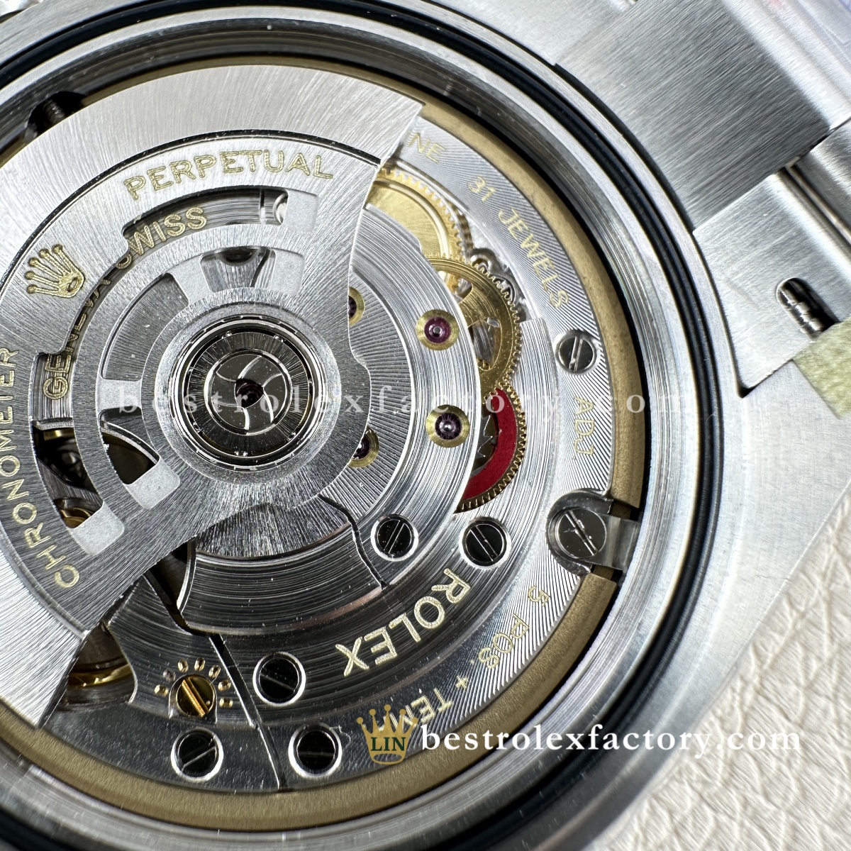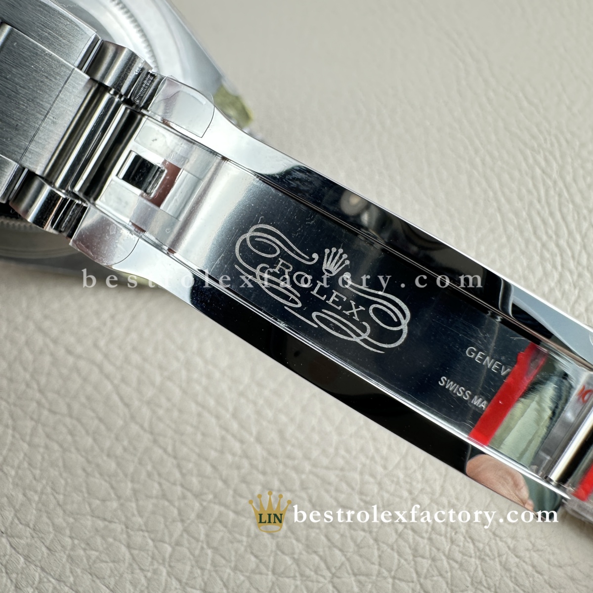 - La stampa del quadrante merita un elogio speciale. Utilizzando vernice svizzera a base d’olio, la scritta "OYSTER PERPETUAL" alle 12 e "Superlative Chronometer Officially Certified" alle 6 rispecchiano l’originale in ogni dettaglio. La forma delle lettere, lo spessore della vernice, persino la spaziatura: tutto è perfettamente replicato. Sotto una lente vedrai la texture che dimostra la stampa a tampone autentica e non una semplice serigrafia.