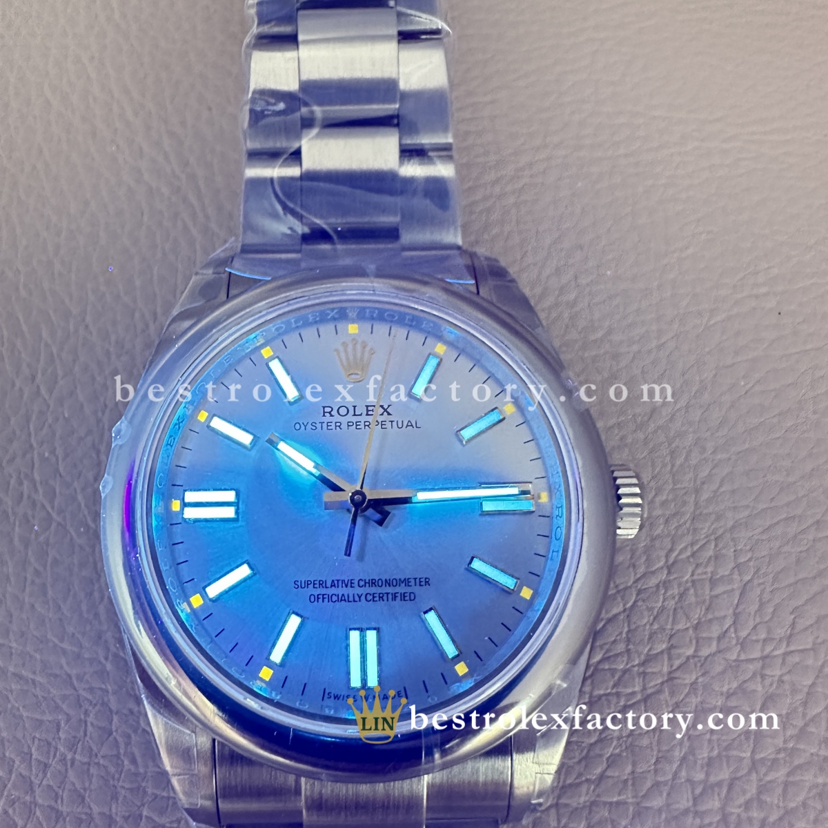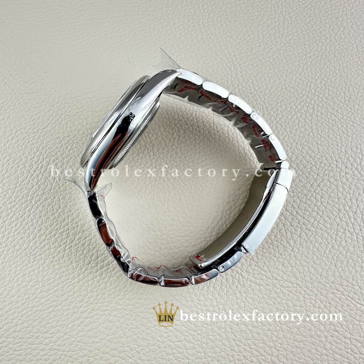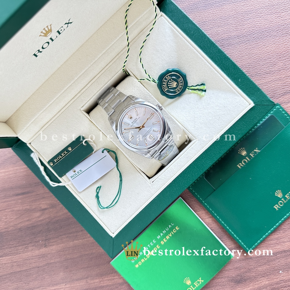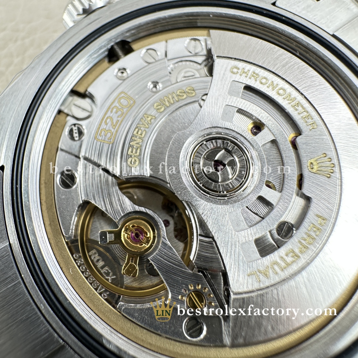 - La stampa del quadrante merita un elogio speciale. Utilizzando vernice svizzera a base d’olio, la scritta "OYSTER PERPETUAL" alle 12 e "Superlative Chronometer Officially Certified" alle 6 rispecchiano l’originale in ogni dettaglio. La forma delle lettere, lo spessore della vernice, persino la spaziatura: tutto è perfettamente replicato. Sotto una lente vedrai la texture che dimostra la stampa a tampone autentica e non una semplice serigrafia.