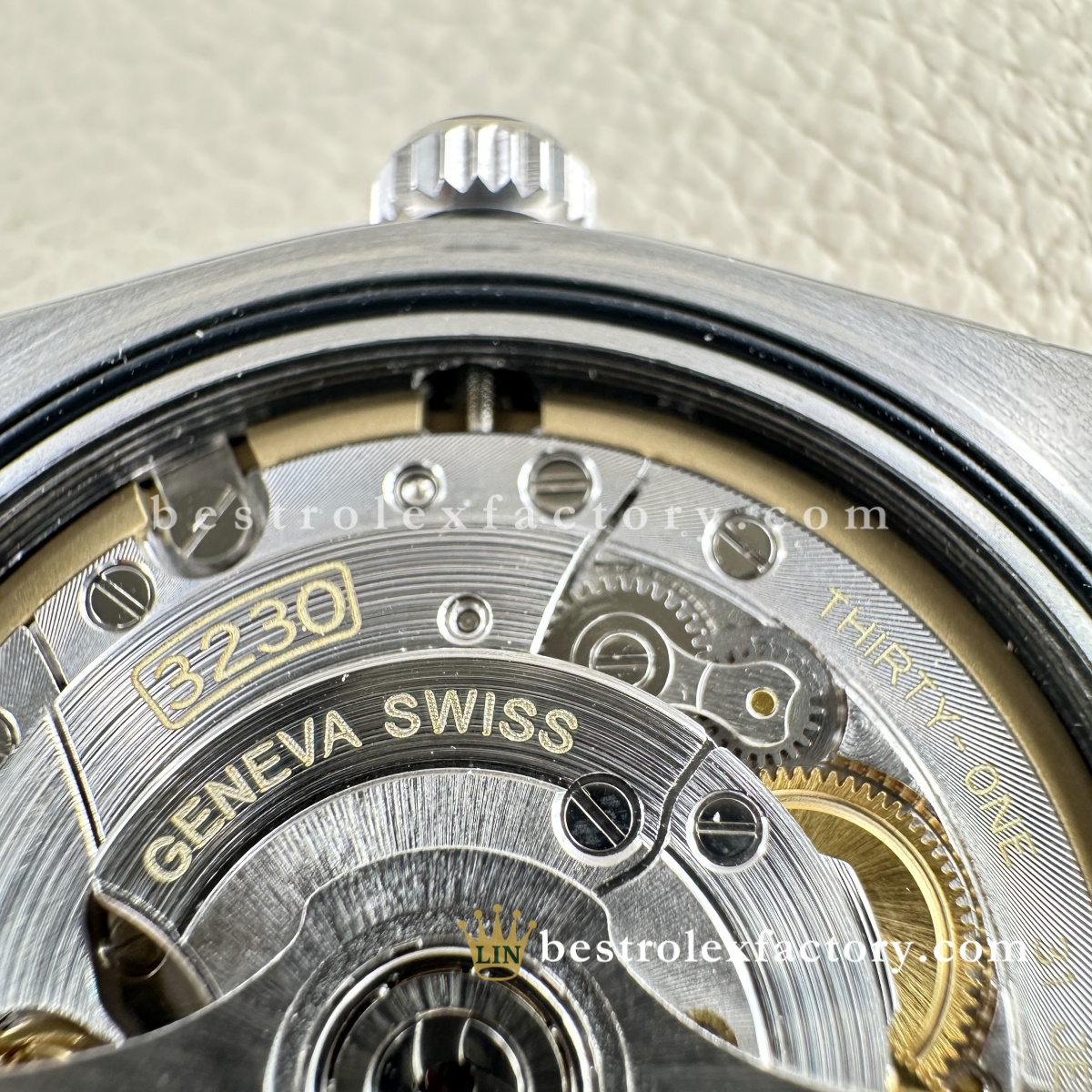 - Il movimento super clone 3230 testimonia la cura tecnica di Clean Factory. Oltre alla precisione, ogni incisione—numeri, lettere, corone—riproduce fedelmente quelle del calibro originale. Lo scappamento Chronergy funziona come dovrebbe, la riserva di carica di 70 ore è reale, e la carica manuale trasmette la tipica sensazione svizzera. Ogni posizione della corona ha quella resistenza precisa che non si può imitare a basso costo.